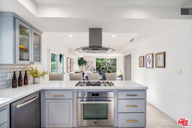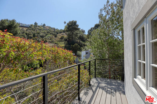 Your search for that perfect lower Nichols Canyon hideaway ends right here on Devista Drive where you will enjoy serene canyon views, great natural light and outdoor space for every time of day. Recently remodeled featuring 3 bedrooms (two with private balconies), 3 baths, a living and dining room that both open to the back patio, and a cook's kitchen designed for any level cook with ample counter space where you can easily entertain on any scale. Great storage and a direct entry garage. Designer details include high-end fixtures, custom cabinetry, French doors. Outdoor entertaining spaces include a large open patio surrounded by mature trees, a hot tub and custom gas fire-pit creating your own private oasis. Primary bedroom features a rolling barn door and picturesque balcony and a spa-like bathroom with dual sinks, soaking tub, and rainfall glass shower. This is quintessential Southern California living at its best you won't want to leave home. Close to Beverly Hills, Runyon Canyon, the Grove and World Famous Sunset Strip. A great opportunity for the most discerning Buyer looking for a mid-century home in one of L.A.'s most desirable enclaves.