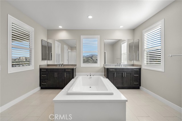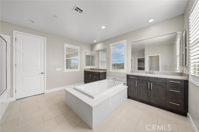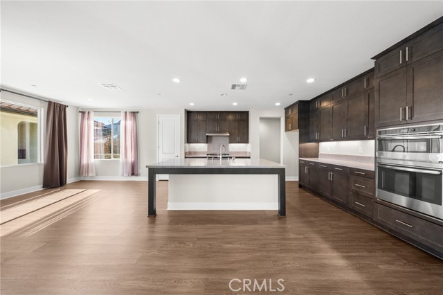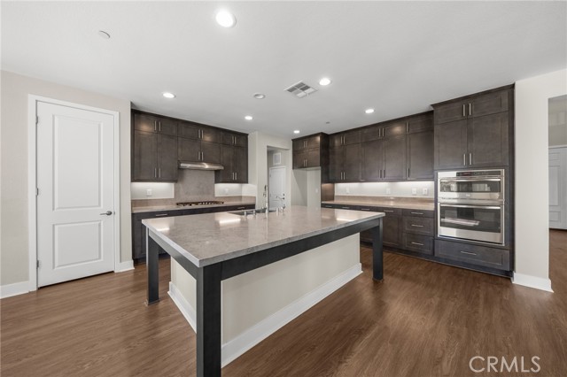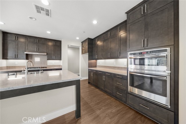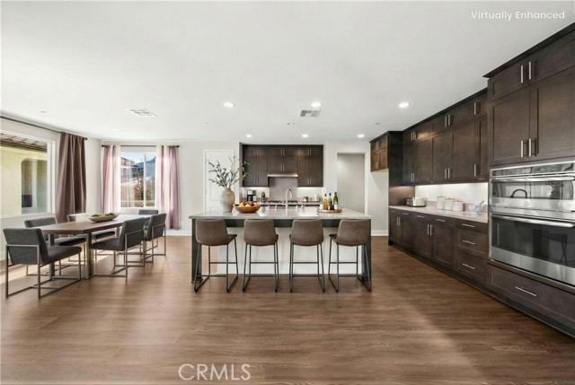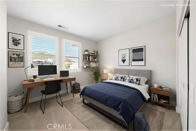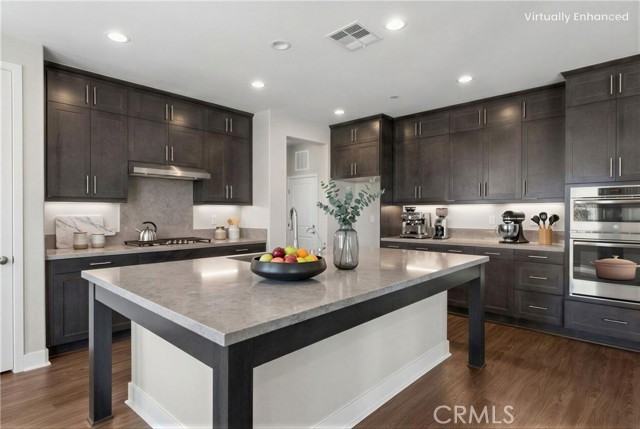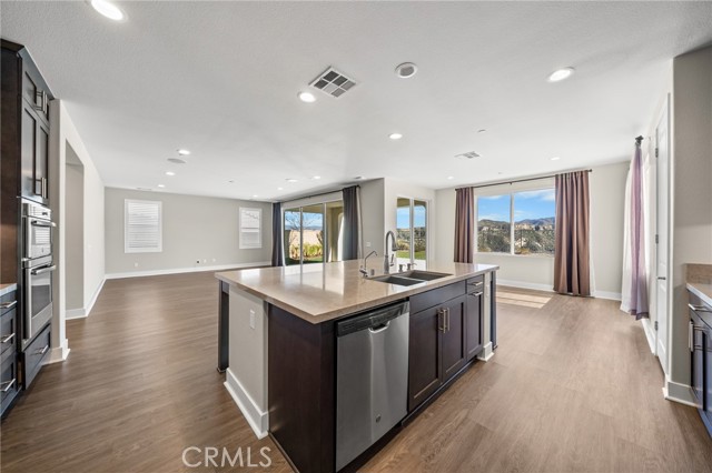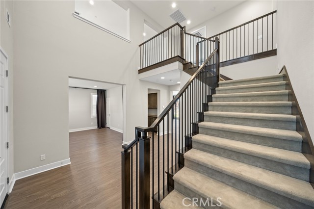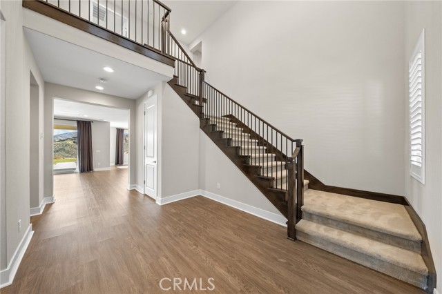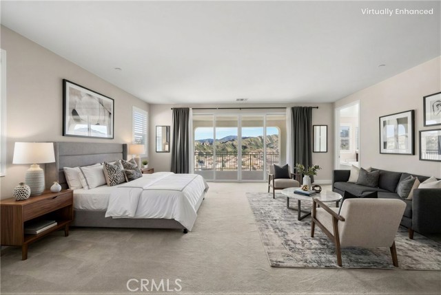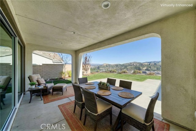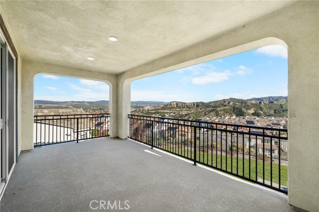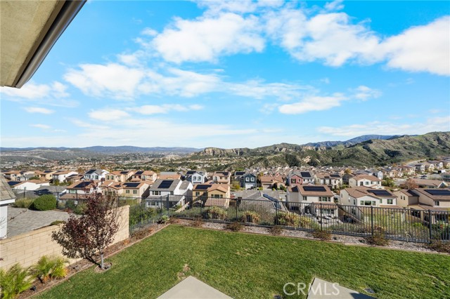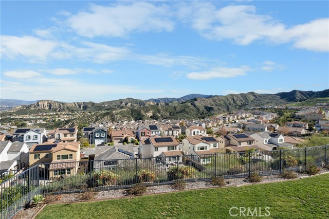 Breathtaking panoramic views and upgrades surpassing model home! Situated on a highly desirable premium lot. Welcome to 25110 Cherry Ridge Dr, a two-story single-family home nestled in the highly desirable Aliento gated community in Santa Clarita. Built in 2019, this modern residence offers the perfect blend of luxury, comfort, & contemporary design. One of this home’s standout features is ITS PEACEFUL CITY & MOUNTAIN VIEWS, providing a serene & picturesque backdrop from both inside the home & outdoor living spaces. Whether you're enjoying your morning coffee or winding down at sunset, the views elevate the overall living experience. Boasting 4 bedrooms & 3.5 baths (one bedroom with en suite bathroom is downstairs), huge loft & office, this 3,442 sq. ft. home sits on an expansive 9,662 sq ft lot. The floor plan is open and airy with high quality finishes throughout. Upstairs, a luxurious primary suite & covered balcony offers plenty of privacy and comfort. Enjoy stunning city and mountain views from the living room, dining room & bedrooms. Modern features are a tankless water heater, fully paid solar panels, and wifi-enabled thermostats, garage door opener, front door lock, and light switches (living & dining). Interior upgrades are full-height stacked kitchen cabinets w/ stained solid wood doors and soft-close cabinet hinges; 15-foot stacked sliding doors in living room; 12-foot French doors in primary bedroom; sliding door in dining room; engineered quartz countertops, plantation shutters by Norman with rod-less design; ceiling speakers in living room & speaker pre-wire in loft (rear surround only); stained solid wood handrail & iron balusters; vinyl plank flooring downstairs; Carpeting upstairs & in staircase; upgraded tile flooring in bathrooms & laundry; and recessed lighting in living room, kitchen, den, and loft. Exterior upgrades are: covered sunroom outside living room; covered balcony outside primary bedroom; covered pavilion in the backyard for year-round outdoor entertaining; landscaped yard, patio, and sprinkler/dripper system. Convenient access to shopping, dining, parks, and major commuter routes. Community pool, recreation center, and gym. Close to top rated local schools, Costco, Target, Stater Brothers, Lowe’s, Trader Joe’s, Toppers, Edwards Cinema & excellent restaurant and entertainment options. Close to 14 freeway. This property is an incredible opportunity to own a beautifully maintained, move-in ready home.