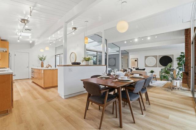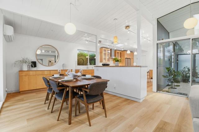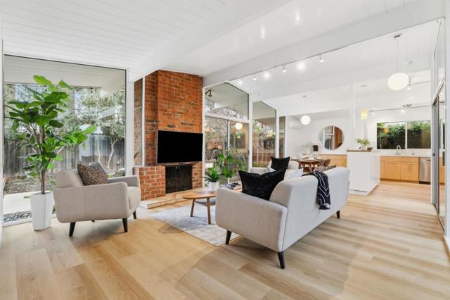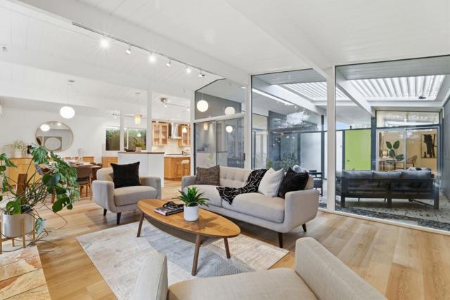 Nestled in Cupertinos sought-after Fairgrove Eichler neighborhood, this iconic Joseph Eichler atrium model perfectly balances timeless mid-century design with modern comfort and everyday livability. Showcasing Eichlers signature philosophy of bringing the outside in, this sun-filled 4 bedroom, 2 bathroom home welcomes you with a private covered courtyard, soaring open-beam ceilings, and expansive floor-to-ceiling windows that seamlessly connect indoor and outdoor spaces. Spanning over 1,500 Sq.ft. of thoughtfully reimagined living space, the home has been tastefully remodeled for todays Silicon Valley lifestyle. The chef-inspired kitchen boasts sleek quartz countertops, a designer backsplash, stainless steel appliances, a gas cooktop, and a spacious island perfect for casual dining or entertaining.The primary suite opens to the serene backyard through a glass door and features a luxurious en-suite bathroom with dual sinks and a glass-enclosed shower. Enjoy the best of California living in the beautifully landscaped backyard, complete with a large patio ideal for outdoor gatherings & relaxation.Ideally located within walking distance of Sedgwick Elementary/Hyde Middle/Cupertino High School, quick access to Cupertino Main Streets vibrant restaurants, Apple Park & Creekside Park.