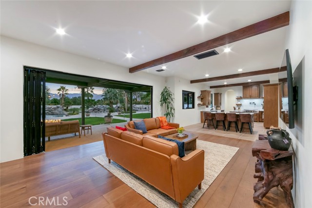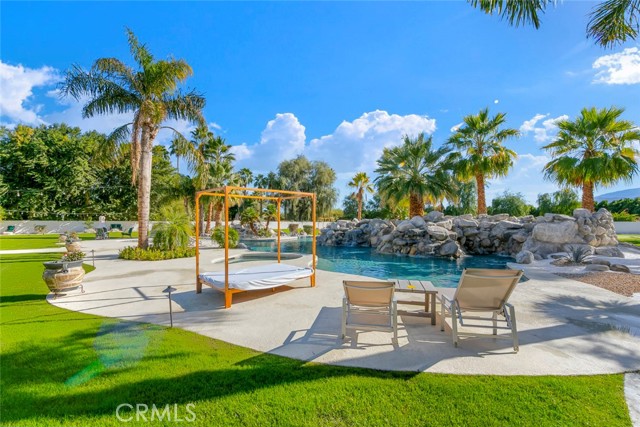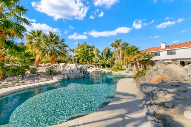 Located behind the gates of The Estates of La Quinta, 81935 Mountain View Lane presents a rare opportunity to own a true resort-caliber estate in one of the desert's most private and sought-after enclaves. Perfectly positioned near the world-class Desert International Horse Park, the Jacqueline Cochran Regional Airport, PGA West, and the exclusive Madison Club, this property offers unmatched access to elite lifestyle amenities while maintaining exceptional privacy within La Quinta. The estate is set on an expansive 1.25 acres, providing exceptional space, privacy, and the scale necessary to support its resort-style amenities and grounds. Designed for both grand-scale entertaining and everyday luxury, the estate showcases one of the Coachella Valley's largest resort-style pools, enhanced by dramatic cascading water features and expansive lounging areas. A private par-3 golf hole with crushed white Augusta-style sand bunkers creates a one-of-a-kind backyard experience rarely found in residential estates, delivering a true country club atmosphere at home.The residence has been thoughtfully remodeled with high-end finishes and architectural details throughout its six bedrooms and six-and-a-half bathrooms. Interiors feature 10-inch wide-plank European oak wood flooring, imported Spanish tile, and Carrera white marble throughout. Custom tile bathrooms, two indoor Jacuzzi tubs, and solid 8-foot alder doors elevate the sense of craftsmanship and quality at every turn. The gourmet kitchen and entertaining spaces are anchored by Wolf and Sub-Zero appliances, three wine refrigerators, a full wet bar, and a dramatic 17-foot Fleetwood-style bi-fold door that seamlessly connects indoor and outdoor living. A six-foot pass-through window further enhances the flow for hosting, while custom cast-iron A/C vents and a whole-house central vacuum system reflect the home's attention to refined detail and modern convenience. 81935 Mountain View Lane is a rare offering that blends privacy, proximity, and resort-level amenities into a single exceptional estate--an ideal retreat for those seeking the highest level of luxury living in La Quinta.