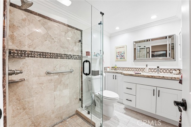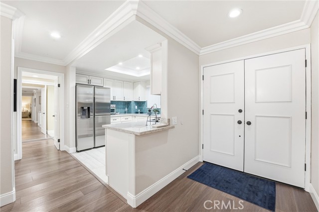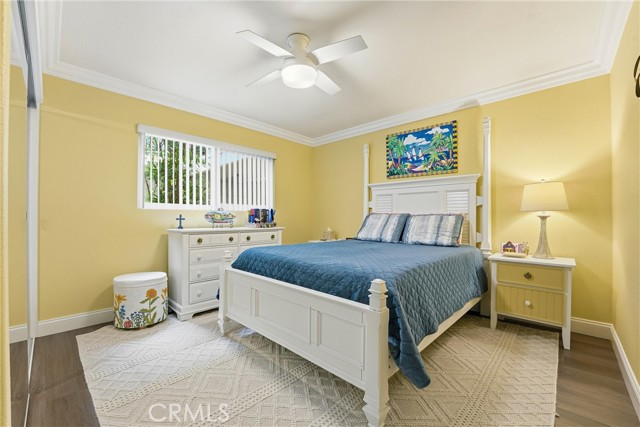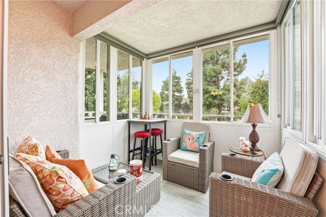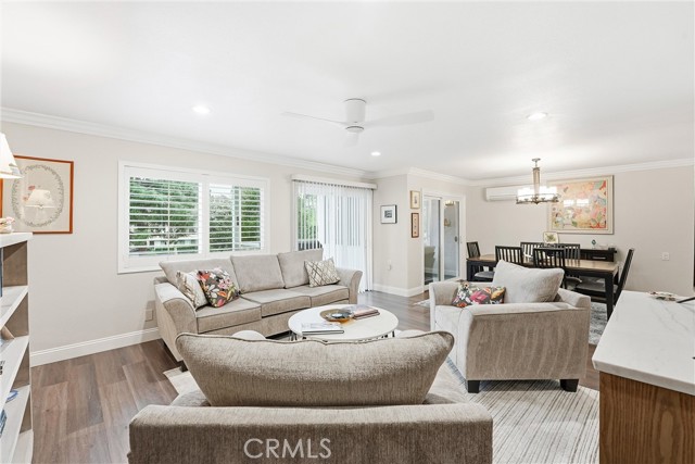 RELAXED LIVING MEETS MODERN COMFORT! Welcome to this beautifully remodeled immaculate condo ideally located in the heart of Laguna Woods. Light, bright and freshly painted throughout, this inviting residence offers a peaceful ambiance enhanced by a harmonious color palette. This thoughtfully designed floor plan welcomes you into a generous living and dining area with serene greenbelt and tree top views, complemented by a versatile semi-private flex space currently used as an office. This desirable and unique feature exclusive to this condo offers exceptional flexibility for today’s modern lifestyle. The balcony is intelligently designed with both open-air space for barbecuing, and an enclosed windowed section creating a perfect indoor-outdoor retreat. The kitchen has been tastefully updated with modern cabinetry, new refrigerator and dishwasher, and a charming built-in coffee station making everyday living both functional and enjoyable. Two spacious bedrooms feature contemporary closet doors, while both bathrooms have been remodeled in a clean stylish aesthetic. Recessed lighting and smooth ceilings throughout enhance the home’s warm and welcoming ambiance. All windows and doors are dual-paned, and each room offers individually controlled, energy-efficient split systems and/or ceiling fans, ensuring personalized comfort and cost-effective living year-round. Ideally located, this 1st floor Garden Villa condo in Villa Capri is set in one of Laguna Woods’ most sought-after locations. Conveniently close to Gate 1 and the Performing Arts Center, and within walking distance to Clubhouse 1, Mother’s Market, CVS, and the library, this home offers unmatched accessibility. The property offers ground-floor parking with storage, elevator access to all floors, and a first-floor banquet room for community gatherings and social events. Homes offering this level of comfort, convenience, and thoughtfully curated upgrades are rare. AS AN ADDED BONUS: with an accepted full-price offer at the asking price, Seller is offering to pay $2500 of the GRF facilities transfer fee at closing. Resort Style Amenities: 27-hole Championship Golf Course & 9 holes (Par 3) Golf Course, Full-Service Restaurant, 5 pools, 2 fitness centers, library, garden, walking trails, pickleball, theatre, equestrian center, art studio, tennis, lawn bowling, complimentary bus system, 7 club houses, and over 200 social clubs, and so much more!
