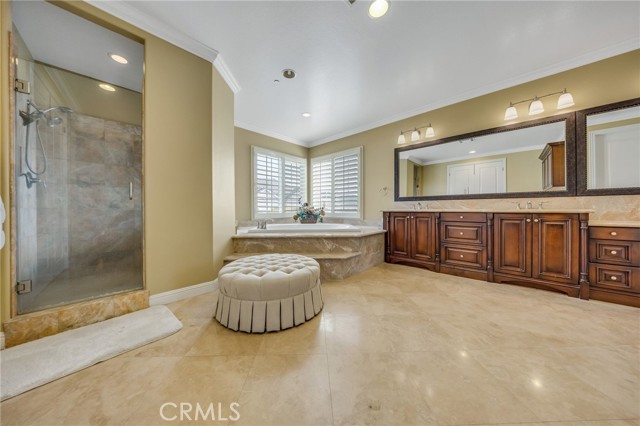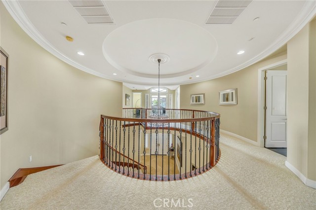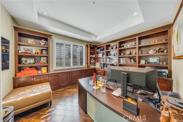 This exceptional Toll Brothers residence, located within the esteemed Vista Del Verde and Black Gold Golf Course communities, has been extensively upgraded beyond the builder’s offerings, creating a truly one-of-a-kind luxury home with over $350,000 in custom improvements. Highlights include a resort-style pool and spa, covered patio, and professionally designed front and rear landscaping, perfect for both entertaining and everyday living. Upon entry, a dramatic foyer welcomes you, featuring an elegant spiral staircase that leads to a rotunda-style upper hallway, setting the tone for the home’s architectural elegance. The chef’s kitchen serves as the heart of the home, boasting marble countertops, high-end stainless steel appliances, built-in refrigerator, and a large center island ideal for gatherings, casual dining, and daily meal preparation. Bay windows overlook the backyard, filling the space with natural light and enhancing the seamless indoor-outdoor connection. The main level also includes 1 bedroom, 1.5 bathrooms, and a dedicated office, offering flexible options for guests, multigenerational living, or remote work. Upstairs, the primary suite feels like a private retreat, featuring a spacious sitting area and a spa-inspired marble bathroom vanities, with generous closet space. Additional bedrooms each feature their own bath, and balcony with views provides a charming spot to relax and enjoy the surroundings. Additional builder upgrades include rich wood flooring, tankless water heaters, a carbon water filtration system, central vacuum, built-in speakers, and extra sound and thermal insulation between floors and roofing for enhanced comfort and efficiency. The home also showcases appx $150,000 in custom cabinetry, including beautifully designed closets throughout the upper level, built-in storage in the playroom and office, and a custom shoe cabinet system in the main garage, offering exceptional organization and functionality. Situated on a premium wide lot with approximately 20 feet of separation on each side, the home provides superior privacy, an increasingly rare feature in the neighborhood. The resort-inspired backyard completes the experience with a striking rock pool and waterfall, spa, covered lounge area, built-in stainless steel BBQ and refrigerator, and an inviting outdoor fireplace, perfect for year-round entertaining. just minutes from schools, shopping, and dining, this home offers luxury, privacy, and an unbeatable location.