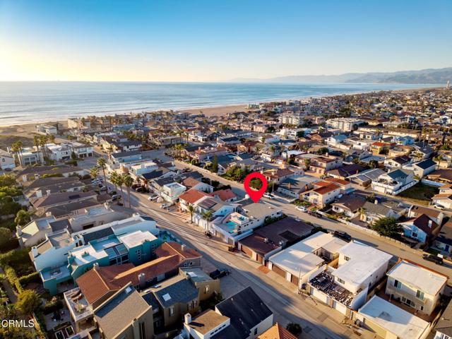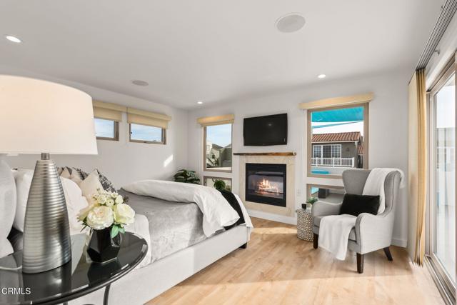 Welcome to your coastal sanctuary in the highly sought-after Oxnard Shores. This beautifully updated two-story residence seamlessly blends comfort, style, and modern coastal living.Exceptional curb appeal welcomes you with grass-lined concrete slab walkways framed by rock beds and flowering landscaping, leading to an impressive solid wood front door. Inside, rich dark wood flooring spans the main level, transitioning to lighter wood upstairs for a bright and airy feel throughout.The main living area is filled with natural light and anchored by a cozy fireplace, creating an inviting space for relaxing or entertaining. A sleek modern bathroom and a beautifully updated kitchen complete the lower level. The chef's kitchen includes double ovens, a stovetop, dishwasher, refrigerator, and a built-in mini wine cooler, flowing seamlessly into the dining area that is ideal for hosting gatherings.Sliding glass doors open to a private covered courtyard-style patio thoughtfully positioned between the main living area and the garage. This sheltered outdoor space allows for year-round entertaining and seamless indoor and outdoor living while staying protected from the elements.Upstairs, two guest bedrooms offer private outdoor access. One features a front-facing balcony with seating, while the other includes a sliding door opening to a rear deck. A light and modern guest bathroom serves this level, along with a versatile office nook that could be converted into an additional bedroom with the addition of walls and a closet.The primary suite is a true retreat, featuring its own fireplace, abundant natural light, and sliding doors that lead to a private rooftop deck. The spa-inspired primary bathroom includes dual vanities, a soaking tub, a separate shower with steam shower potential, and a walk-in closet.Outdoor living truly sets this home apart with multiple patios and rooftop decks designed for entertaining and relaxation. The main rooftop deck is perfect for gatherings, while an additional upper deck features a fireplace and stunning views of the hills, mountains, ocean, and the Channel Islands, creating an unforgettable setting for sunsets and evenings under the stars.Additional highlights include a three-car garage with laundry and a layout thoughtfully designed to maximize indoor and outdoor coastal living.
