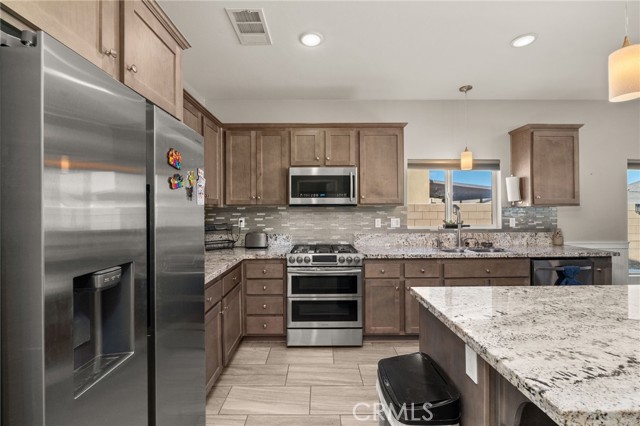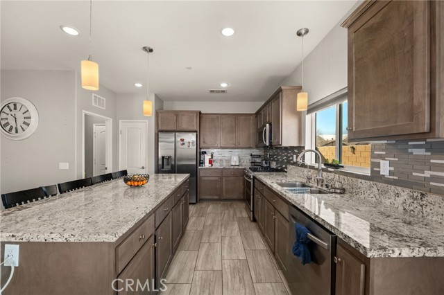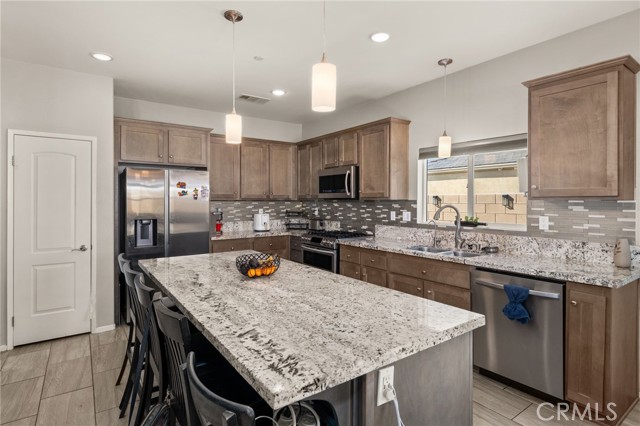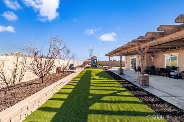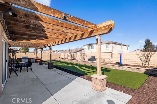 WONDERFUL SINGLE STORY Home Built in 2019 is BEAUTIFULLY UPGRADED, has a GIANT BACKYARD and FREE SOLAR PACKAGE!! Enjoy this EXPANSIVE OPEN-CONCEPT Floor-Plan Offering 1848sqft with 4 Large Bedrooms and 2 FULL Bathrooms * * Gourmet ISLAND Kitchen with Designer Cabinetry, GRANITE SLAB Counters & Custom Back-Splash, In-Kitchen Dining, Walk-In Pantry, STAINLESS STEEL Appliance Package and Breakfast Counter for the Kids * * Super-Sized Great Room is PERFECT for Family Gatherings with Built-In Media Cabinet, Beautiful TILED FLOORING Throughout, LED Lighting & FIREPLACE * * EXTRA LARGE Backyard has FULL-LENGTH Covered Patio, BUILT-IN BBQ Island, Synthetic Grass, Large Side-Yard and Surrounded by BLOCK-WALLS...Lots of ROOM for the The KIDS TO PLAY * * UPGRADED Throughout with 2-Toned Custom Paint, DESIGNER FIXTURES, Ceiling Fans, Raised Panel Decor Doors, FREE SOLAR PACKAGE, Granite Counters, LED Lighting, CUSTOM Wood Panel Accent Wall, Built-Ins, Wainscoting, Front Courtyard and MUCH MUCH MORE * * SPACIOUS Primary Bedroom with Private Access to the Backyard, Custom Wood Panel Accent Wall, Sliding Barn Doors - AND - Primary Bathroom with DUAL SINKS, Walk-In Shower and Romantic Garden Tub * * (3) Additional Nicely Appointed Bedrooms * * Indoor Laundry Room * * GREAT CURB APPEAL with Front Courtyard, TWO Car Attached Garage and GATED RV PARKING for your Boat/Trailer or RV * * Close to Schools, Shopping, Dining/Restaurants, Parks and EZ freeway Access for the Commuter * * SUBMIT ALL OFFERS