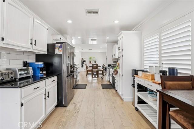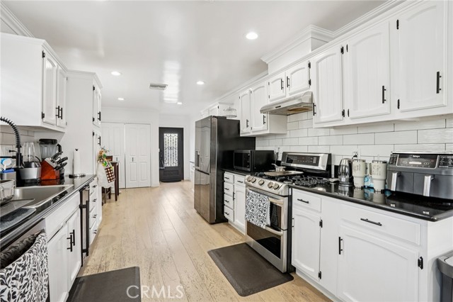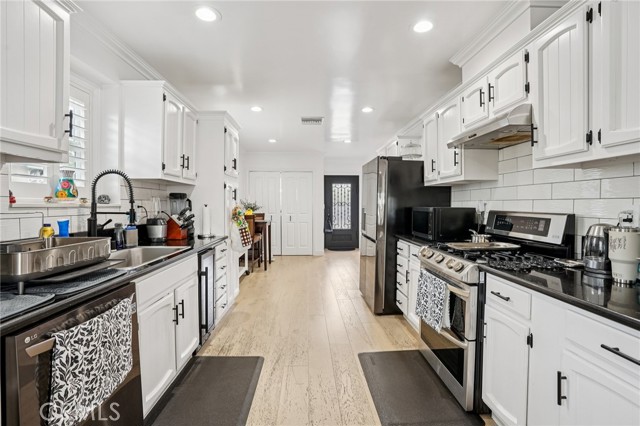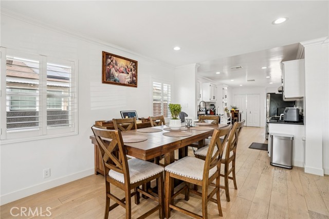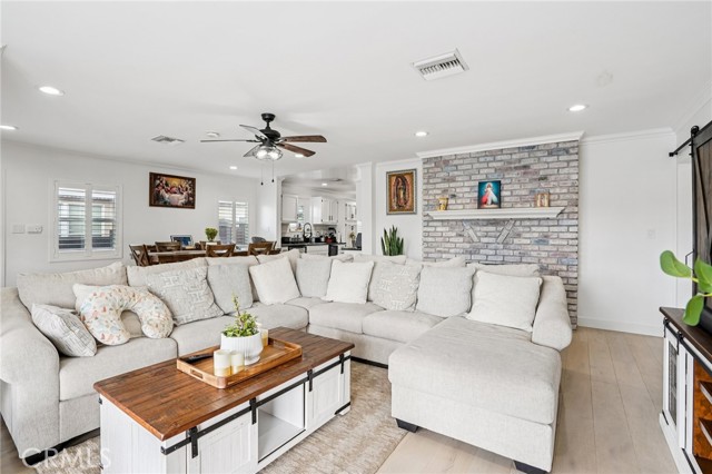 Tucked away on a quiet cul-de-sac, 11215 Garetal Avenue is a beautifully reimagined Santa Fe Springs residence that has been fully updated with no detail overlooked. This four-bedroom, two-bathroom home offers a seamless open-concept layout designed for both everyday living and effortless entertaining. Large bedrooms provide comfort and flexibility, while the thoughtfully designed bathrooms feel refined and modern, including a true primary bath that completes the private retreat. The airy family room is filled with natural light, enhanced by large windows that create a bright and welcoming atmosphere throughout the home. A wide, linear kitchen anchors the space with clean lines and a functional layout, featuring a charming breakfast nook and an adjacent dining area that flows naturally off the living space. Neutral, light-filled tones and natural finishes throughout the home create a warm, timeless aesthetic. Outside, the expansive concrete backyard offers a blank canvas ready for your vision—whether that’s a custom outdoor entertaining area, lush landscaping, or a future pool. The home’s curb appeal is undeniable, highlighted by dark brick accents, manicured landscaping, and a long, wide driveway leading to a detached two-car garage. Major upgrades including the roof, plumbing, and electrical have all been completed, offering peace of mind and long-term value. This cul-de-sac gem combines style, space, and modern updates in a location that feels both private and connected—an exceptional opportunity in Santa Fe Springs.