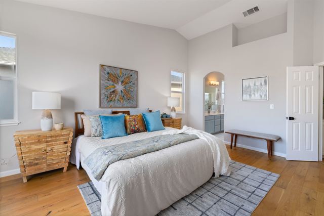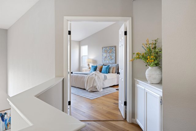 Wake up on top of the world with sweeping views of Castro Valley and Lake Chabot Park. Perched atop “John Hill” in The Views community, this light-filled, detached home welcomes you with an elegant, open floor plan and two decks to showcase the spectacular scenery. The vaulted-ceiling living room with a modern fireplace creates a delightful space to gather with friends and family. Adjacent to the living area, a large, thoughtfully updated kitchen looks out to the rolling hills. The main level also features a guest bedroom or home office, and a full bathroom–ideal for hosting visitors. Upstairs, are three generous bedrooms and two baths, including a primary suite with a private balcony to enjoy the panoramic views. Recent updates include hardwood floors, fresh paint, new light fixtures and door knobs, and modern appliances. Enjoy the prime central location, just minutes to downtown Castro Valley and the Lake Chabot trails, and a bridge hop to Silicon Valley. A convenient two-car garage and drought tolerant landscaping make this a perfect move-in-ready gem.