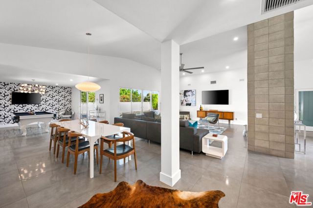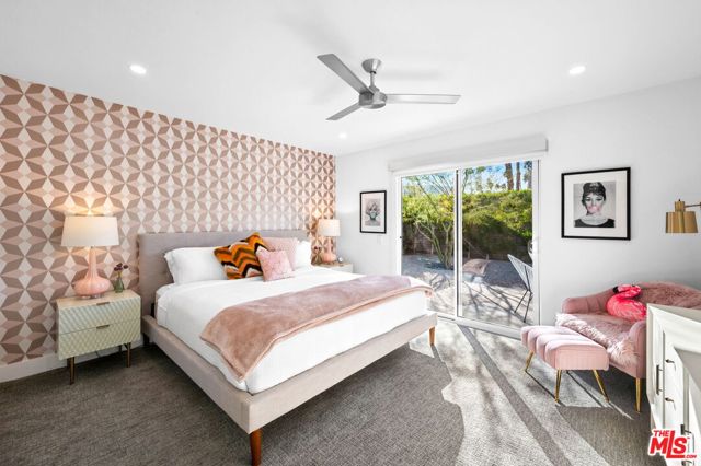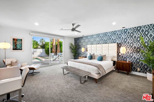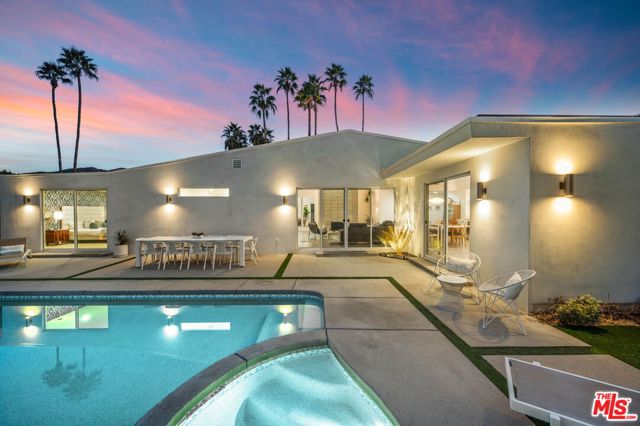 Welcome to 1160 E Marion Way, nestled in the coveted neighborhood of Twin Palms. One of Palm Springs' most celebrated midcentury communities, prized for its architectural pedigree, resort-like ambiance, and convenient location to downtown. Set behind walls and gates for exceptional privacy, this reimagined and remodeled in 2022, 4-bedroom/3-bathroom residence offers approximately 2,824 sq ft of bright, open living with soaring 12ft ceilings, generous room proportions, and a showstopping floor-to-ceiling fireplace. The chef's kitchen is a true centerpiece, including Quartz waterfall-edge countertops and striking tilework. Designed for effortless indoor/outdoor living, the home is wrapped in glass with sliding doors on multiple sides, and every bedroom opens directly to outdoor spaces. A grand entry, private courtyard with a fire pit, and stunning mountain views set a memorable tone upon arrival. At the rear of the residence, a private desert oasis awaits: a sparkling saltwater Pebble-Tec pool, outdoor shower, secondary fire pit lounge, and plenty of space to relax or entertain, all framed by views of Mt. San Jacinto. The spacious primary suite offers dual walk-in closets and a spa-inspired bath with soaking tub, walk-in shower, and dual vanities. Key features include a billiards room, large porcelain tile throughout, upgraded plumbing and Herman Miller light fixtures, a dual-zone HVAC system, an updated electrical panel, wired-in-wall speakers, whole-house Pelican water softening and filtration, mature landscaping design, a full-size 2-car garage, 57 owned solar panels, and much more. Please email for a full list. With a strong history as a successful vacation rental, this property offers outstanding flexibility as a full-time residence, seasonal escape, or income-producing investment. A true Palm Springs sanctuary in one of the city's most sought-after neighborhoods, offering the very best of desert Southern California living. Property available turnkey with furniture/furnishings available outside of escrow.