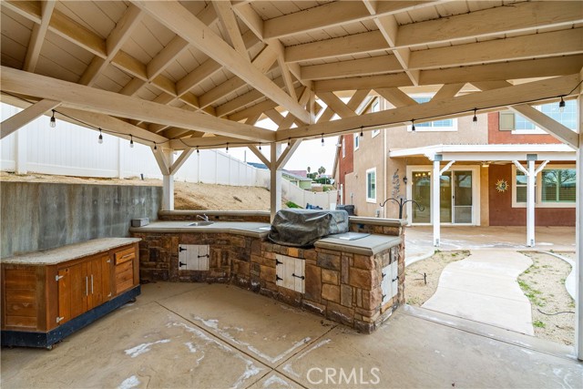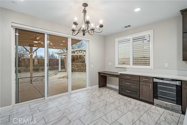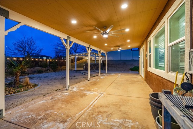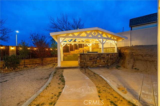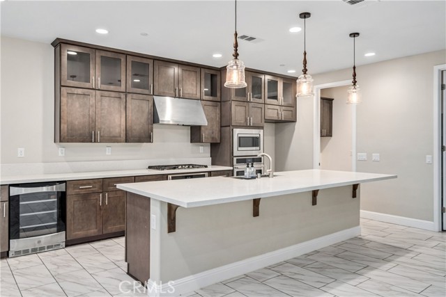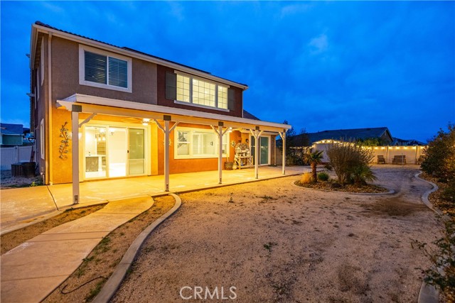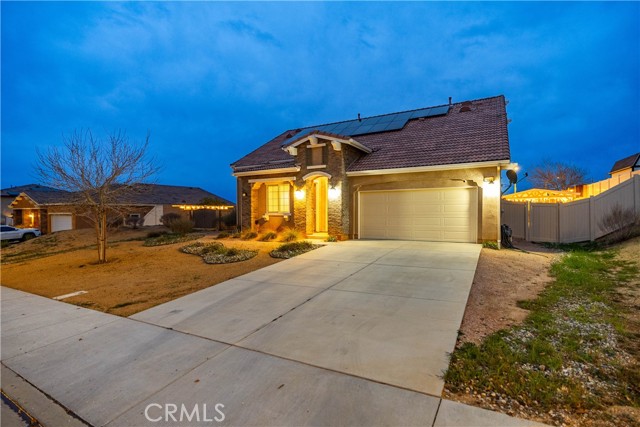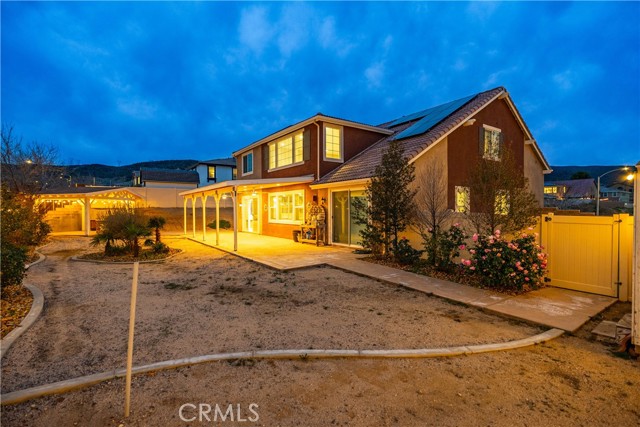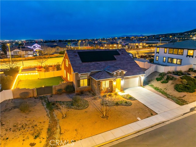 ***LIVE BEAUTIFULLY*** Welcome to this stunning two-story Palmdale residence, thoughtfully designed for comfort, luxury, and multi-generational living. The front yard is meticulously landscaped. No HOA or Mello-Roos! The gourmet chef’s kitchen is a true showstopper, featuring quartz countertops, stainless steel appliances, custom cabinetry, a wine cooler, deep sink, LED recessed lighting, and expansive barstool seating. A massive walk-in pantry provides exceptional storage and functionality. The spacious family room boasts soaring high ceilings and a beautiful fireplace and includes upgraded flooring and baseboards. The downstairs primary suite offers a private retreat with dual vanities in a spa-inspired bathroom with a massive walk-in closet. An additional downstairs in-law suite includes its own private bathroom and kitchenette, ideal for multi-generational living. Upstairs, the elegant railings leads to a HUGE open loft space and additional large bedrooms and bathrooms.The backyard is built for enjoyment and entertaining, featuring a covered patio, BBQ area, and grassy play space. This home also includes RV ACCESS, and FULLY paid solar, providing both sustainability and long-term savings.