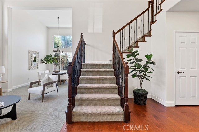 Breathtaking Views! Gorgeous Upgrades! Fantastic Floor Plan! This 5 Bedroom, 3 Bathroom Residence sits on an Incredible Private Lot featuring unparalleled Majestic Views! Located in a Prestigious Resort Style Gated Community, Stunning Views and Quality Upgrades are the Hallmarks of this Exquisite home! Soaring Two Story Cathedral Ceilings, Engineered Hardwood Flooring and Stunning Iron Staircase greets you upon entry and sets the tone of Elegant Design and Luxury evident throughout the home. Enter the Open Great Room and take in the Boundless Views from every angle. The Gourmet Kitchen Features Upgraded Granite Counter Tops, Custom Light Fixture, Stainless Steel Appliances, and is open to the Inviting Family Room. The Spacious Family Room features Beautiful Hardwood Flooring, Built In Speakers, and a Cozy Fireplace perfect for Family Gatherings and Holiday Celebrations. The Highly Desirable Downstairs Bedroom and Renovated Full Bathroom, and Indoor Laundry Room round out the first floor. The Gorgeous Iron Staircase leads to the Impressive Second Floor featuring the 4 Spacious Bedrooms and 2 Bathrooms. The Spacious Primary Suite Retreat provides Views as Far as the Eye Can See from every angle, step outside onto your Massive Outdoor Deck and Enjoy the Sunset! Additional Upgrades include Designer Paint, Custom Designer Window Coverings, 3 Car Garage with 220V. Enjoy Resort Style Lake Mission Viejo Amenities and close proximity to Parks, Universities, and Shopping Centers, Enjoy Incredible Views of Multiple Firework Shows on 4th of July! Beautiful Home..Come see this one in person!