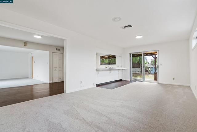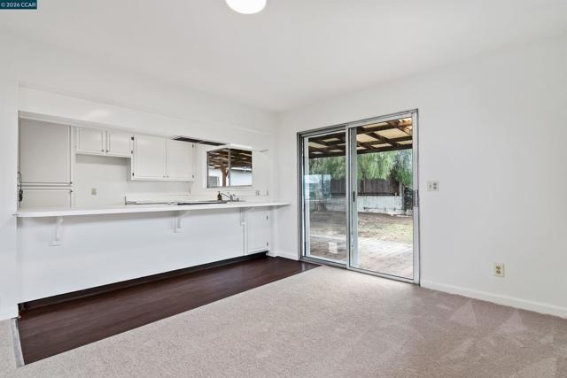 Welcome to this spacious single-level home offering 4 bedrooms, 2 bathrooms, and just over 1,700 square feet of comfortable living space. The updated interiors feature new carpet flooring and new paint throughout, making the home feel fresh and bright. This home's open layout presents a seamless connection between the kitchen, dining, and living areas—ideal for everyday living and entertaining. The kitchen offers ample cabinetry, generous counter space, and a breakfast bar overlooking the main living area, while large windows and sliding doors invite natural light throughout. The flexible floor plan includes a private primary bedroom and additional rooms perfect for family, guests, a home office, or creative use. Enjoy indoor-outdoor living with direct access to the backyard, featuring a covered patio area ready for gatherings, relaxation, or future customization. The expansive lot provides plenty of room to garden, play, or explore expansion possibilities. Additional highlights include an attached garage, ample driveway parking, and a convenient location near shopping, schools, parks, and commuter routes. A wonderful opportunity to own a versatile home with space to grow, personalize, and make your own.