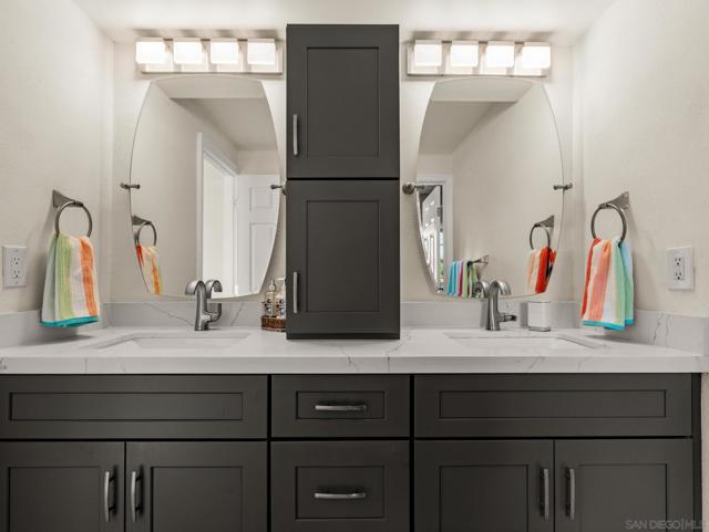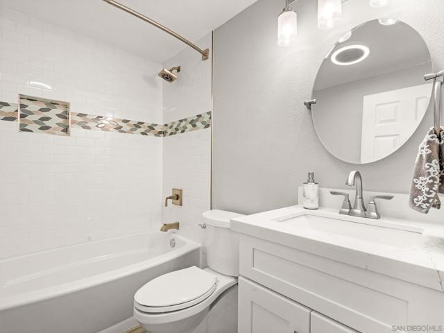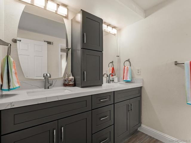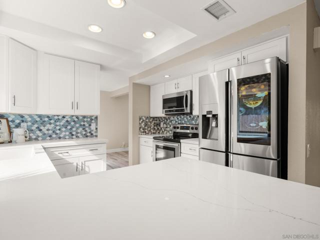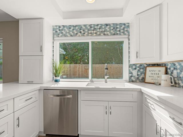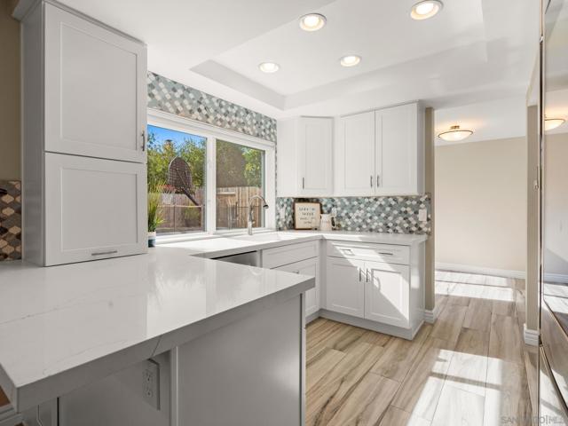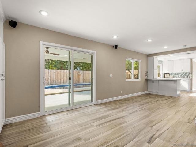 Beautifully remodeled home in the heart of Poway! This stunner offers a recently renovated kitchen with soft close white shaker cabinets, custom counter and back splash and stainless appliances. 3 full bathrooms have each been custom designed with beautiful tile showers, countertops and cabinetry. Enjoy outdoor entertaining on the covered patio with automatic sun shade while BBQing at the built in island or in your private below ground pool with newer pebble tech plaster and variable pool pump. Perfectly maintained with newer dual pane windows throughout, newer neutral flooring throughout, full HVAC system, tankless water heater and a full house fan. Walk to shopping and restaurants! No HOA or Mello Roos! This one is a must see!