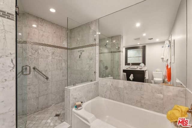 Sophisticated Park Avenue style condominium in the heart of Hancock Park, located in the Majorca building. This beautifully upgraded, light-filled residence features wood floors, a formal entry hall, an expansive living room, and a large formal dining area ideal for entertaining. The kitchen includes stainless steel appliances, granite countertops, a breakfast bar, abundant storage, and space for a breakfast table, with an adjacent inside laundry area. Both the living room and kitchen open directly to a large, private terrace, creating an exceptional indoor outdoor flow. The spacious primary suite is highlighted by a bathroom with double sinks, a separate soaking tub, and a walk-in shower. Additional features includes, a gracious and updated lobby, extra storage in the garage area, and a large grassy communal area at the rear of the building. Ideally located just moments from Larchmont Village's beloved shops, cafes, and dining.