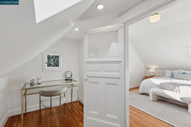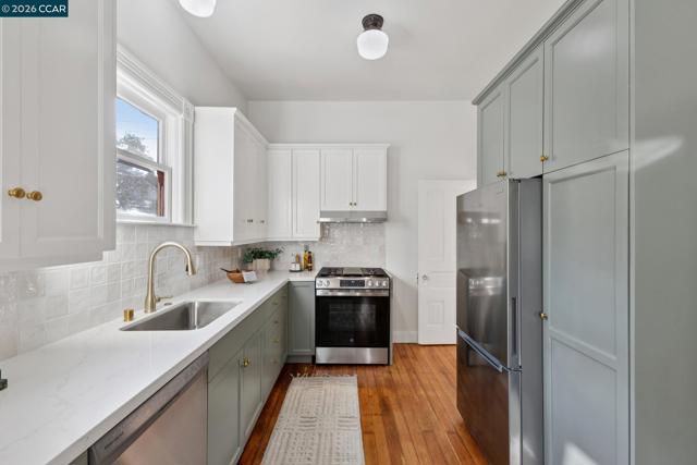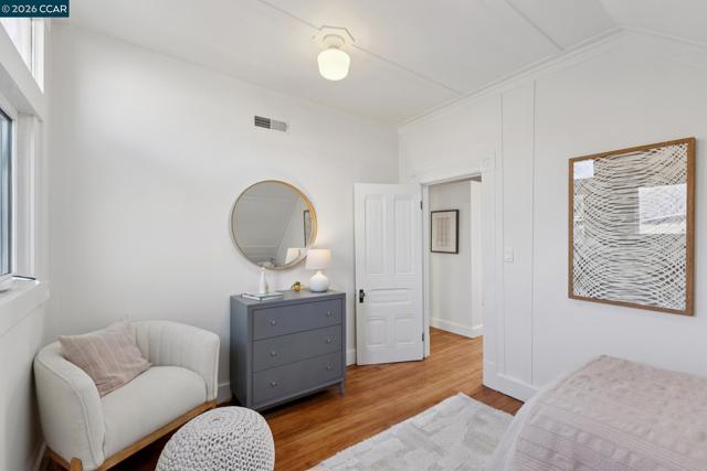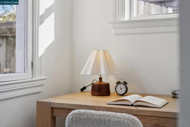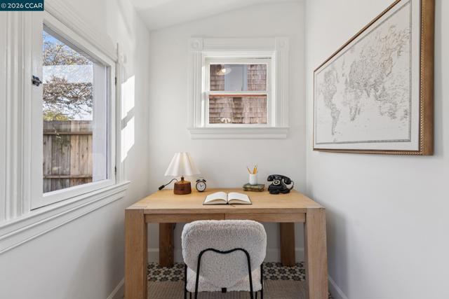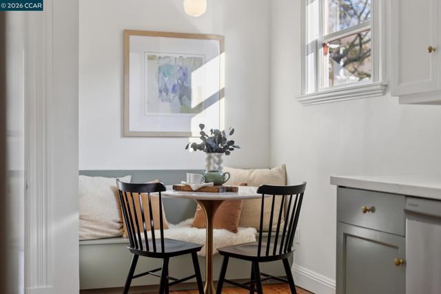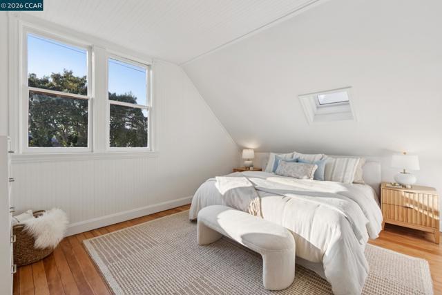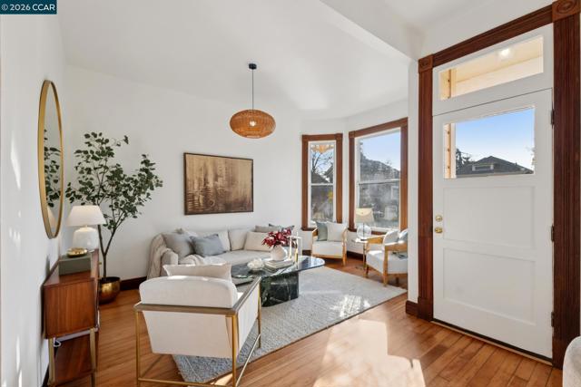 Warm, inviting, and thoughtfully updated, this west Berkeley home blends classic character with a clean, modern sensibility. Sunlight fills the living spaces through tall windows framed by original wood trim, highlighting beautifully refinished hardwood floors and well-proportioned rooms ideal for both everyday living and entertaining. The updated kitchen features soft contemporary cabinetry, white stone countertops, brass hardware, and new stainless steel appliances, along with a charming breakfast nook ideal for casual meals or morning coffee. Three bedrooms offer flexibility for guests, work, or creative use, including a bright upper-level bedroom with high ceilings and skylights. Two tastefully updated bathrooms complement the home’s timeless style. Recent improvements include a updated bathrooms and kitchen, freshly painted exterior, newer roof, and foundation updates, offering peace of mind and long-term value. The generous backyard provides ample space for entertaining, gardening, play, or the potential addition of a studio or ADU (buyer to verify).