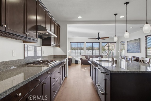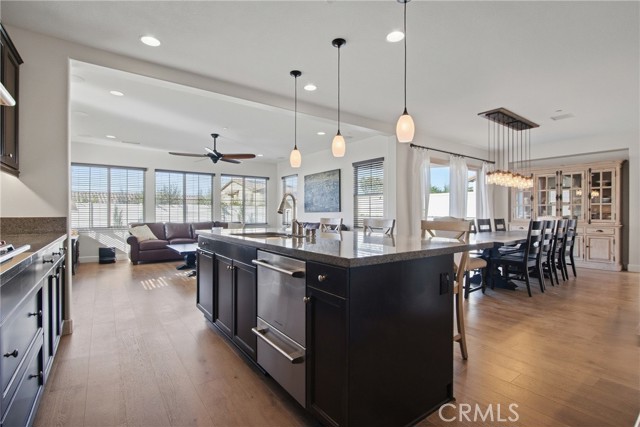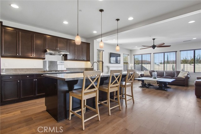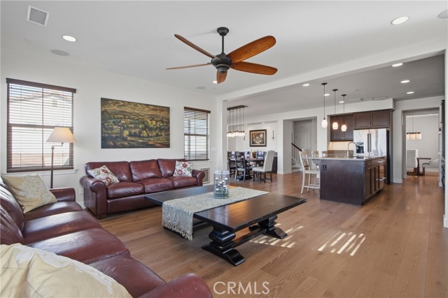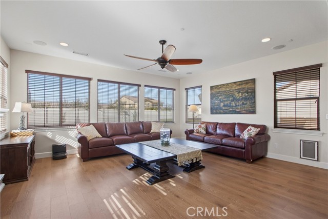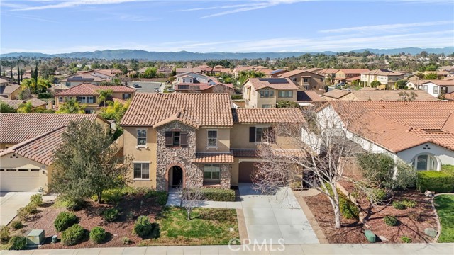 Rare opportunity in The Reserve at Paseo del Sol. This exceptional residence offers the largest floor plan in the community with 3,707 sq. ft. of refined living space, ideally located in the heart of Temecula’s wine country. Thoughtfully upgraded with wide-plank engineered wood flooring throughout, the home blends elevated design with everyday comfort. A private office with French doors, formal dining room, and a downstairs en-suite bedroom create a flexible, highly functional layout. The open-concept living area showcases a chef’s kitchen with stainless steel appliances, 5-burner gas range, oversized island, and granite countertops, flowing seamlessly into an expansive family room with fireplace and additional entertaining space. No solar? No problem. This home comes complete with not one, but two whole-house fans, offering an energy-efficient way to keep the home cool and comfortable year-round. Upstairs, the luxurious primary suite features serene hillside views, a spa-inspired bath, and an oversized walk-in closet—plus the best seat in the house for enjoying Temecula’s spectacular July 4th fireworks. Additional en-suite and generously sized bedrooms, upstairs laundry, fresh interior paint, and new carpet complete the interior. Set on one of the largest lots in the community, the backyard offers ample space for a pool, custom landscaping, or future ADU. Enjoy resort-style amenities including pools, fitness center, parks, sports courts, and access to award-winning Temecula schools—where luxury, privacy, and lifestyle converge.