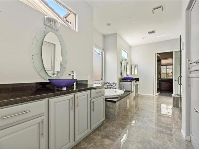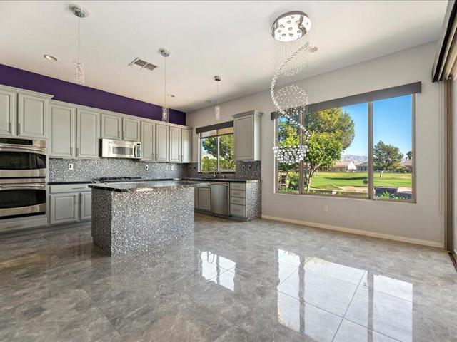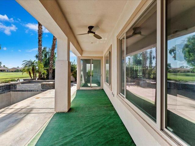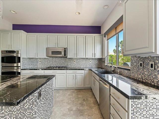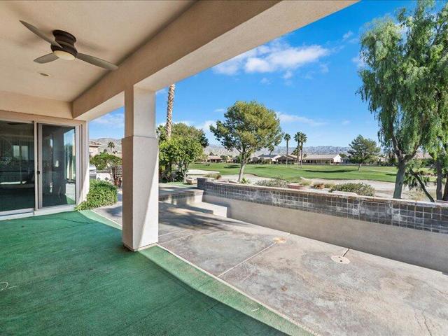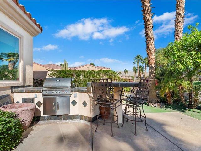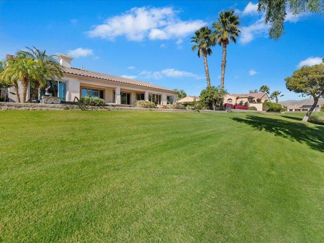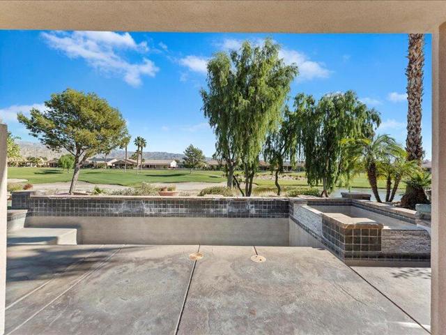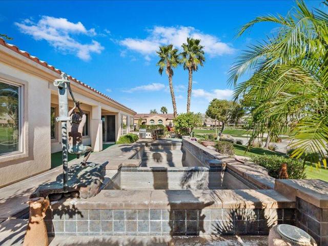 Located within the prestigious Sun City Shadow Hills 55+ gated community, this stunning 2,966 sq. ft. La Paz model--the largest floorplan in the community--offers exceptional luxury, space, and upgrades, including a private CASITA with a 3/4 bath.Ideally situated on the golf course with serene pond VIEWS, the private backyard is a true resort-style retreat featuring a large POOL with dual sheer descents, a raised SPA with stone tile spillover, vibrant fruit trees, and a built-in BBQ peninsula with bar seating. Breathtaking mountain views provide the perfect backdrop for relaxing or entertaining.Through elegant custom glass entry doors, the home opens to a spacious, open-concept layout with pristine large-format tile flooring throughout the main living areas. The living room features recessed ceiling speakers, a gas fireplace, a built-in dry bar, and dual picture windows overlooking the backyard.The spectacular kitchen is a chef's dream, showcasing stone countertops, a center island, stainless steel appliances, designer lighting, a walk-in pantry with custom shelving and glass door, and a butler's pantry with extensive cabinetry. The formal dining room is accented by a chic chandelier, while the private office/den with dual glass doors offers an ideal space for work or quiet retreat.The luxurious primary suite includes direct patio access, a walk-in closet with custom built-ins, and an expansive spa-inspired bathroom featuring a soaking tub, dual vanities, and an oversized natural-stone shower.Additional highlights include a spacious laundry room with sink and storage, and a massive three-car garage equipped with extensive built-in cabinetry.Sun City Shadow Hills offers 24-hour guard-gated, resort-style living with two golf courses, two clubhouses, two fitness centers, three pools, tennis, pickleball and bocce courts, four dog parks, and over 60 social clubs--all in the heart of the Coachella Valley.This exceptional home is truly one of the finest properties in the community, offering luxury living, unmatched views, and outstanding value.