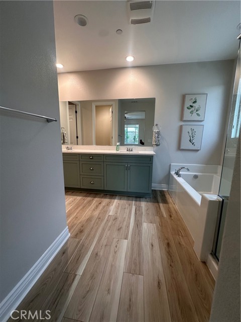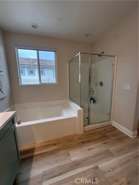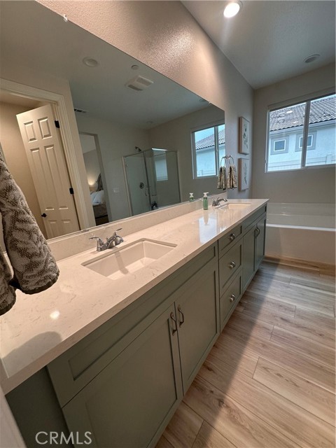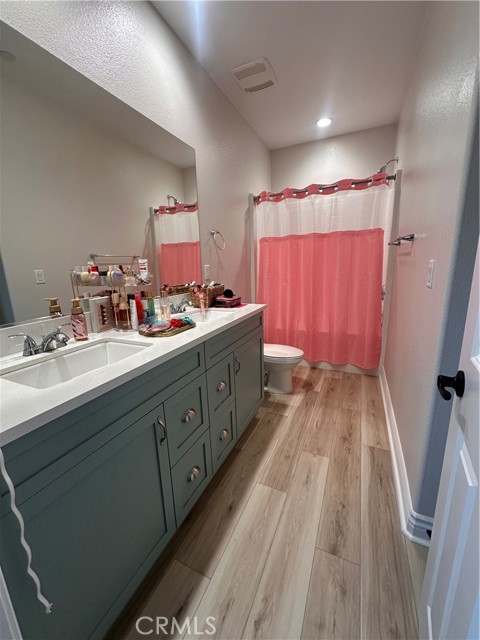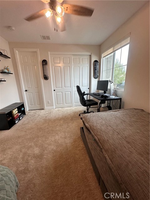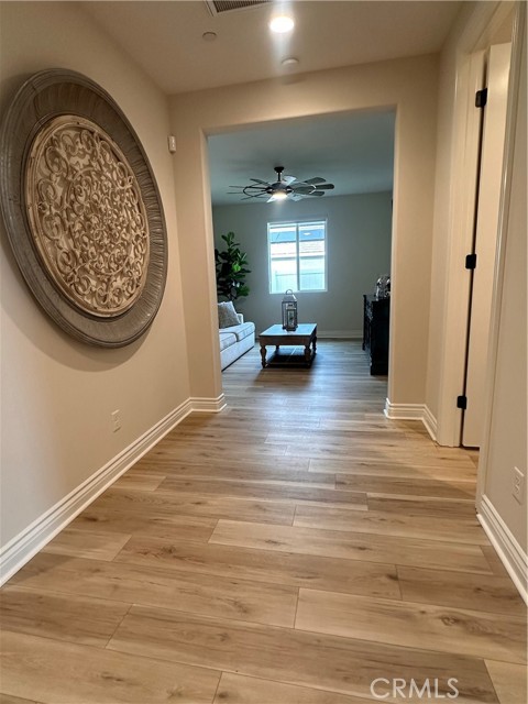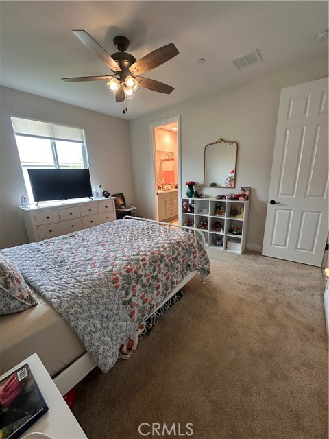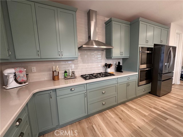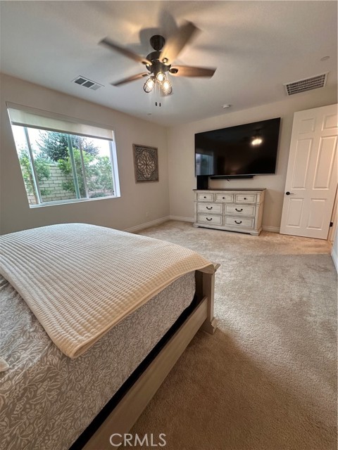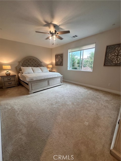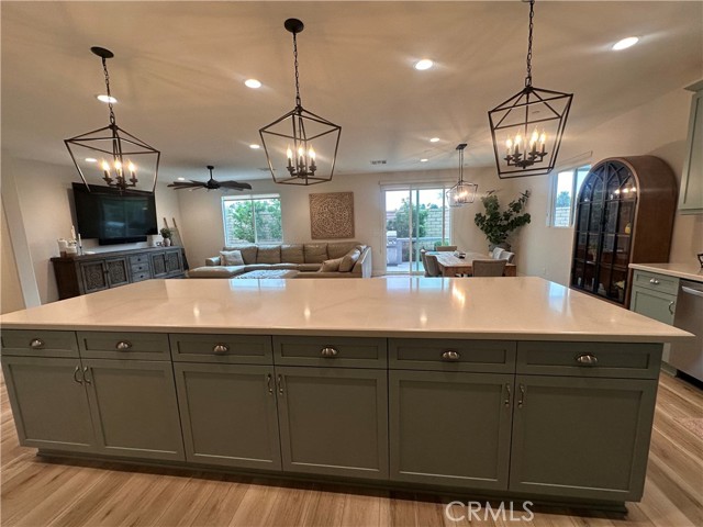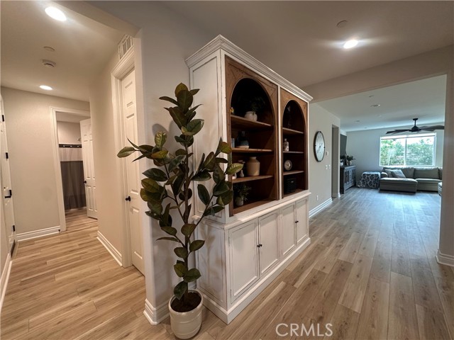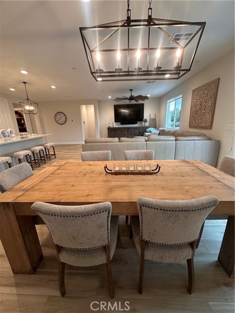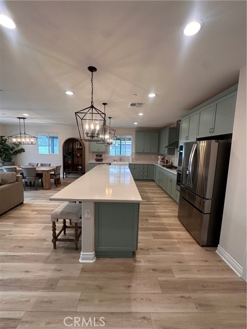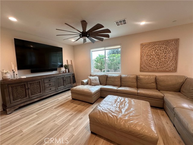 Welcome to this stunning, nearly new single-story home that truly shows like a model. Thoughtfully designed with an open-concept floor plan, this expansive residence offers approximately 2,653 square feet of beautifully finished living space, situated on a generous 8,712-square-foot lot. The home features four bedrooms and four bathrooms - three full and one half bathrooms, including two private en-suite bedrooms, ideal for multigenerational living or guests. The remaining bedrooms share a well-appointed bathroom, with an additional guest bath conveniently located near the hallway. At the heart of the home is a gourmet kitchen complete with all appliances included, an oversized 4’ x 12’ island, farmhouse sink, designer vent hood, pull-out trash/recycling, custom cabinetry, and seamless flow into the spacious great room and secondary dining area. Recessed lighting enhances both the kitchen and family room, creating a bright and welcoming atmosphere. Upgrades throughout include vinyl flooring in main living areas, plush carpet with upgraded padding in all bedrooms, tasteful ceiling fans, and upgraded window coverings. The indoor laundry room includes an electric washer and dryer for added convenience. Step outside through the sliding glass doors to a resort-style backyard, featuring an 8’ x 11’ above-ground spa, built-in BBQ island, and a fully insulated 13’ x 30’ covered patio—perfect for year-round entertaining. The front and backyard are fully hardscaped and landscaped, complete with an automatic drip irrigation system. Patio furniture is also included. Additional highlights include paid-off solar, exterior perimeter lighting, and numerous thoughtful upgrades that make this home truly move-in ready. Come experience the quality, comfort, and style this exceptional property has to offer—this is one you don’t want to miss.