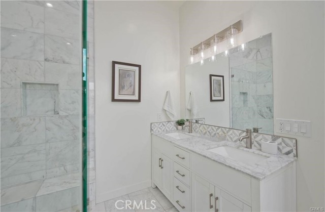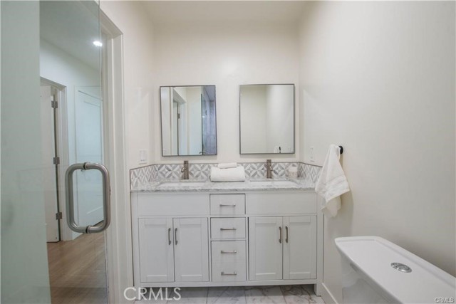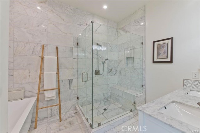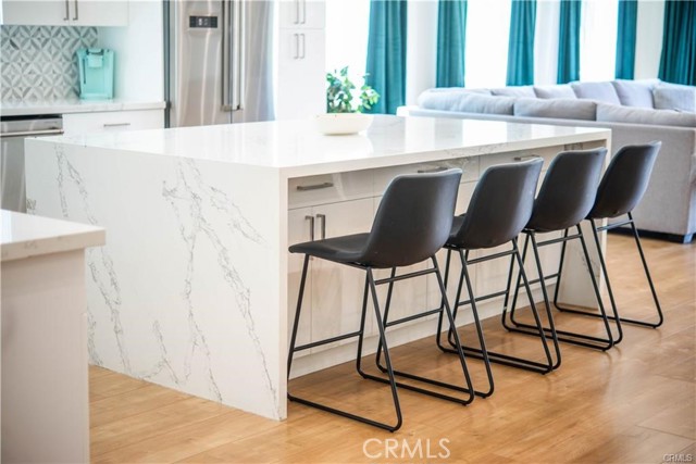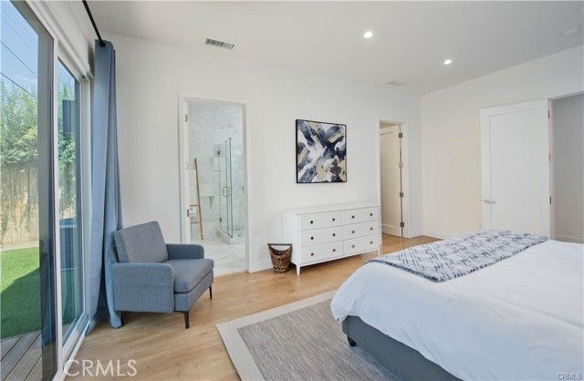 Stunning Remodeled Encino Park Home with Modern Upgrades and Energy Efficiency. Welcome to this beautifully remodeled and expanded 5-bedroom Encino Park gem, offering a seamless open floor plan flooded with natural light and highlighted by a striking exposed wood beam ceiling. From the moment you enter, you’ll be captivated by the expansive great room featuring wall-to-wall glass doors that open to a serene outdoor space. The chef’s kitchen is a showstopper — designed with quartz countertops, a spacious eat-in island with ample storage, soft-close white cabinetry, premium Thor stainless steel appliances, and a massive walk-in pantry for ultimate convenience. This home includes three generously sized bedrooms near the front of the house, accompanied by a large shared bathroom with double vanity. The luxurious primary suite is a private retreat with a walk-in closet, spa-like bathroom featuring an oversized shower, soaking tub, and dual sinks. An additional en-suite bedroom with its own walk-in closet and full bath adds flexibility for guests or extended family. Step outside to your private backyard oasis, complete with low-maintenance turf, a durable Trex deck perfect for entertaining, and lush landscaping. Enjoy energy efficiency year-round with fully owned solar panels and Tesla Powerwall batteries, keeping your electric bills low and your home powered even during outages. This move-in ready home blends comfort, luxury, and sustainability — don’t miss this rare opportunity in Encino Park!