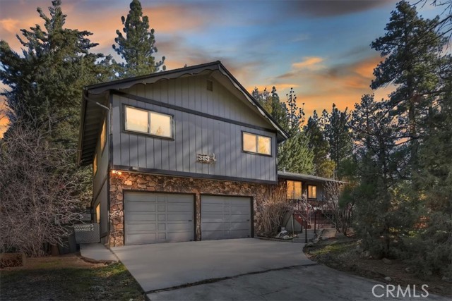 Attractive central location in Fox Farm, close to ski resorts, grocery stores, restaurants, parks, and public boat launch, on a tree-lined street in the heart of Big Bear Lake. Great full-time residence, second home, or investment opportunity. Featuring three spacious bedrooms with ample storage, wood trim and paneling throughout, and an open, functional layout. The galley-style kitchen is equipped with a dishwasher, refrigerator, and microwave, and connects seamlessly to a dedicated formal dining area highlighted by open-beam ceilings and wood floors—perfect for gatherings after a day on the mountain. The adjacent living room showcases a large native rock fireplace with wood burning air-tight insert, creating a cozy focal point for chilly Big Bear evenings, and offers direct access to the outdoors. A laundry room and half bath conveniently serve the main level, while upstairs you’ll find a full bathroom with separate tub and shower, updated sinks, and new faucets. Additional features include a 2-car attached garage with room for vehicles, gear, and storage, plus a sizable back yard with built-in sled hill—ideal for winter snow play or summer relaxation. Previously used as a long-term rental. Improvements include new roof (May 2019) and new gutters (September 2020). Dedicated 50 amp panel for future spa. Schedule your private showing today and start making memories in the mountains!