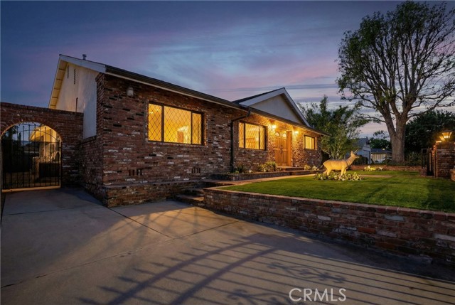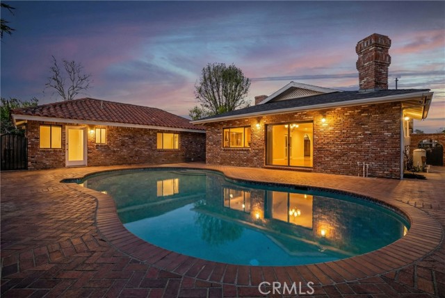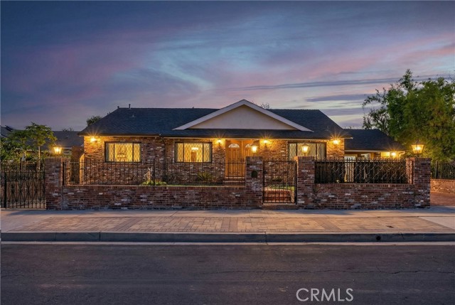 Tucked behind gates on a tree-lined Granada Hills street, 10835 Petit Avenue delivers timeless ranch-style character with a rare guest house setup—ideal for today’s lifestyle. A covered portico and carport introduce the home’s original brickwork, setting the tone for the warmth found throughout: freshly painted interiors, vintage hardwood floors, and sun-filled living and family rooms—each anchored by its own fireplace and framed by serene pool views. The main residence offers 3 bedrooms, 3 bathrooms, and 2,137 square feet of comfortable, single-story living. At the heart of the home, an expansive kitchen is thoughtfully appointed with granite countertops, a WOLF range with oven, a separate wall unit with double ovens, and exceptional pantry and cabinet storage—designed to support everything from everyday routines to effortless entertaining. Bedrooms feature mirrored closet doors, while the primary suite showcases newly refinished wood flooring. A detached guest house provides over 400 additional square feet and includes 2 bedrooms and 1 bathroom, with a kitchenette area and separate laundry room featuring plumbing and electrical hookups already in place, ready for completion. The guest house is unpermitted; however, documentation is in progress and permits are prepared to be finalized with the City (buyer to verify all permits, square footage, and intended use). This additional space presents an exceptional opportunity for a future ADU, private home office, flex workspace, or poolside retreat. Behind the scenes, meaningful upgrades elevate peace of mind: dual tankless water heaters, newer copper plumbing throughout, and multiple HVAC systems (two serving the main home and one dedicated to the guest house). Outside, the property is set back and privately secured with two separate driveways, including a covered carport behind an electric gate, a fenced front lawn, and generous brick-and-concrete hardscape for abundant parking. The backyard is a true sanctuary with a sparkling pool, reclaimed brick patio, and mature trees—an inviting setting for both entertaining and quiet evenings at home. Conveniently positioned with easy access to the 118, 405, 5, and 210 freeways, this Granada Hills offering blends classic architecture, thoughtful improvements, and rare versatility in one refined, turnkey package. All furnished images are virtually staged - the original, unedited images appear directly after all staged photos in this listing.
