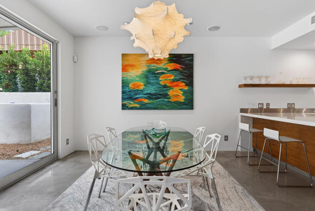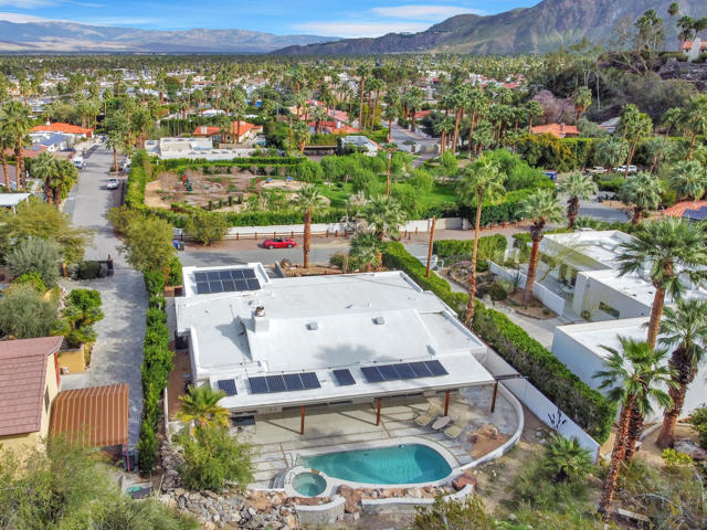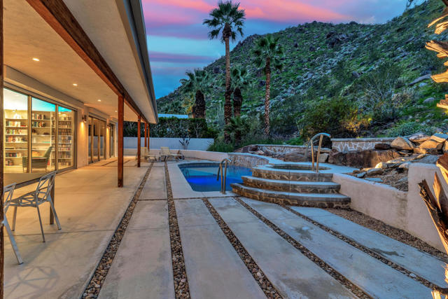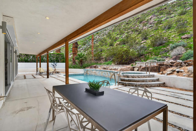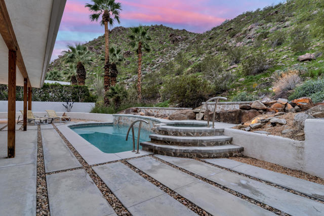 Step inside this modern architectural masterpiece and you'll feel as though you've walked straight into a photograph--every line, every vista, every detail perfectly composed. Set in the legendary Mesa neighborhood of South Palm Springs--once home to icons such as Sonny & Cher, Suzanne Somers, Clark Gable, and Carole Lombard--this residence is set in one of the most coveted neighborhoods in Palm Springs. From the moment you enter, your eye is drawn toward the pool, which appears to rest directly against the rise of the San Jacinto Mountains. This breathtaking backdrop becomes the living art for the Living Room, Kitchen, Dining Room, and Primary Suite, creating seamless indoor/outdoor living at its finest. Clean, sleek lines and walls of glass define the home's modern aesthetic, complemented by polished concrete floors, 4 Bedrooms, 3 Bathrooms, and sweeping views from nearly every room. The Living Room frames dual vistas--mountain, pool, and the sweeping valley below. The gourmet kitchen is thoughtfully designed to satisfy even the most discerning chef. The Primary Suite impresses with vaulted ceilings, an exceptionally large walk-in closet, and a spa-inspired bath that embodies sophistication. Located just moments from iconic hiking trails, Indian Canyons Golf Course, and the vibrant energy of downtown Palm Springs, this exceptional property offers an unmatched blend of design, views, and convenience. A striking Mesa retreat where contemporary architecture and the unique grandeur of the mountains come together in perfect harmony.
