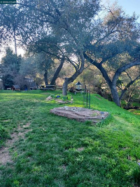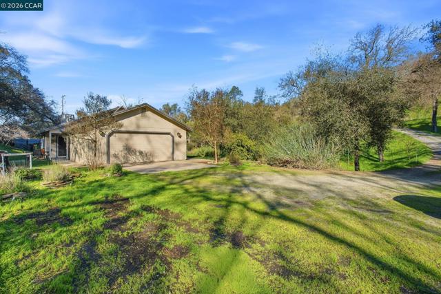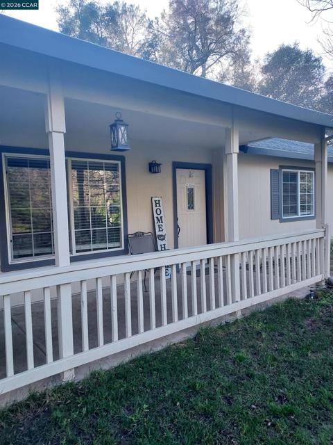 This spacious, privacy gated, ranch-style home is sits on 3 acres of fully fenced land, featuring a seasonal creek and acreage that is waiting for your creations. So much possible on this land! The interior of the home is fully tiled, offering 3 bedrooms and 2 bathrooms. The home has a semi open floorplan making it wonderful for entertaining guests or simply tending to your family without complete division. The kitchen has been previously updated and features beautiful cabinetry and granite tile countertops. The primary bedroom is spacious and offers direct access to the patio area through elegant French doors. Both bathrooms have been previously updated with new toilets, faucets, and shower fixtures. Additionally, the property includes a shed equipped with power and water, providing ample space for storage or hobbies, with the home itself featuring a 200 amp service to accommodate various needs. The upper portion of land features a lookout point, perfect for a secondary relaxation space, tiny home, barn, man cave or she-shed. Situated in Rancho Calaveras subdivision, in a private and sought-after area, this home offers comfort, elegance, and natural beauty. Minutes drive to lakes, hiking, and optional HOA amenities, restaurants, shopping, gas. WELCOME TO YOUR NEW HOME!!!