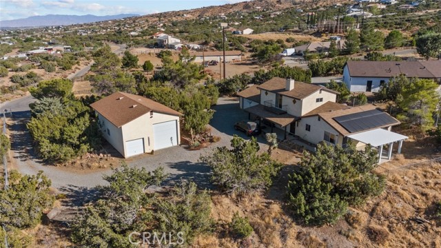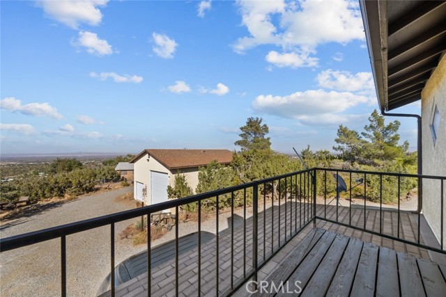 Welcome to 8676 Sky Line Drive in the picturesque city of Pinon Hills! This stunning two-story single-family home features 3 spacious bedrooms and 2 elegantly designed bathrooms, blending contemporary flair with comfort. The residence showcases exquisite tile and laminate flooring, ambient lighting that creates an airy atmosphere, and charming ceiling fans that provide a refreshing breeze, all complemented by beamed ceilings that add a touch of sophistication. Upon entry, you’re greeted by an expansive living room to your left, perfect for relaxation and warmth, complete with a cozy fireplace that invites you to unwind. The kitchen is a true entertainer's delight, boasting gorgeous granite countertops, a central island with a sleek electric stovetop, a built-in oven, a stylish range hood, a dishwasher, and generous cabinet storage, transforming it into a culinary haven. The inviting dining area is ideal for enjoying meals, while a dedicated laundry room enhances daily convenience. Bright and airy, the bedrooms offer ample space for personalization, with the primary suite featuring a luxurious en-suite bathroom that includes a stylish vanity area, a separate jetted bathtub, and a walk-in shower, along with a private balcony perfect for savoring the morning sun or evening breezes. The additional bathroom showcases both a bathtub and a walk-in shower for added comfort. Outside, your private backyard oasis awaits, complete with plenty of room to create your dream retreat on a spacious 3.2-acre lot where possibilities are endless. The detached garage offers ample parking space and can also be utilized for extra storage or transformed into an ADU. Ideally situated just a short drive from the 138 Highway, this exquisite property presents an incredible opportunity to embrace a tranquil lifestyle in a beautiful setting. Experience the charm and elegance of this remarkable home at 8676 Sky Line Drive!