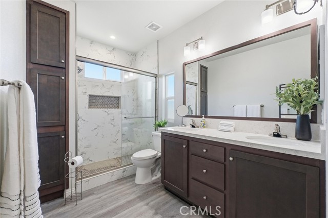 Turnkey coastal living in Costa Mesa. This beautifully custom 2023-built home is located in a desirable community and sits on a quiet corner lot offering abundant natural light and privacy. The open-concept floor plan features 2 bedrooms, 2 bathrooms, plus a versatile bonus room ideal for a home office, den, or guest space. Interior highlights include high ceilings, upgraded waterproof vinyl flooring, recessed lighting, and dual-pane windows throughout. The fully updated open kitchen showcases modern countertops, self-closing cabinetry, and included appliances, along with a separate laundry room with washer and dryer. Both bathrooms are beautifully finished, and the primary bedroom features a walk-in closet. Outdoor living includes a covered front porch, wraparound patio, six-foot fencing, garden area, and storage shed. The extended carport accommodates up to three vehicles and includes an EV charging plug. Community amenities include a heated pool, clubhouse with kitchen, pool tables, and ample guest parking. Conveniently located minutes from Huntington Beach and Newport Beach, South Coast Plaza, The LAB and The CAMP, parks, trails, major freeways, and approximately 15 minutes to John Wayne Airport. A rare opportunity to own a move-in-ready home in a prime Costa Mesa location
