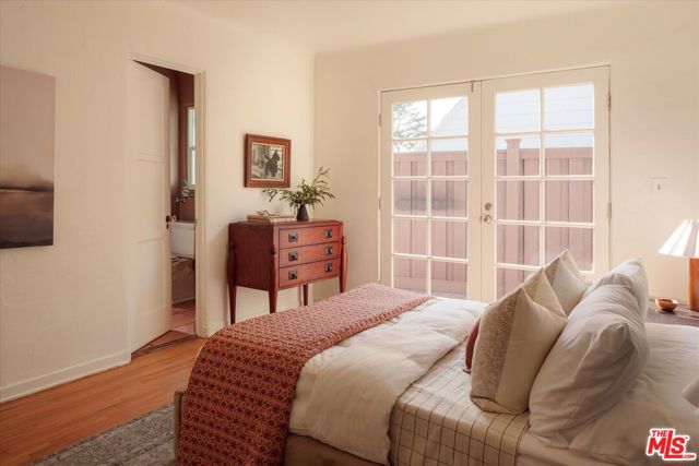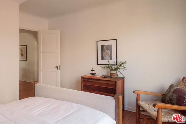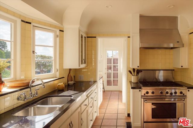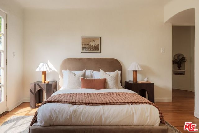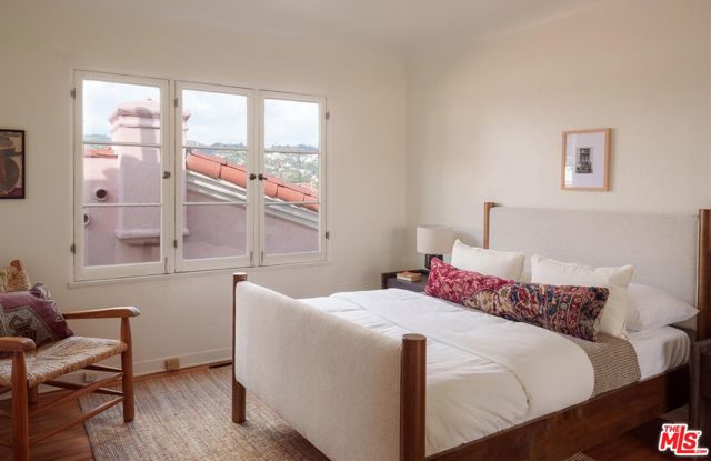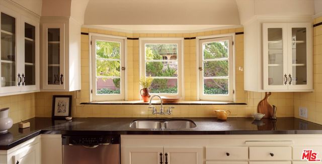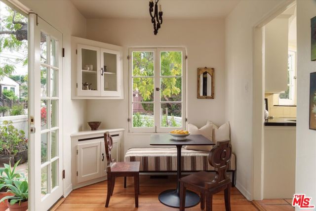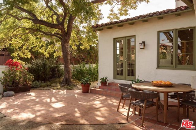 A charming Spanish Colonial hacienda tucked away on a corner lot in the Franklin Hills of Los Feliz. Wraparound front gardens and a walled courtyard - anchored by towering cacti, mature plantings, and a Jacaranda - frame the home's low-slung architecture: classic archways, a red Spanish tile roofline, and a turreted foyer. Inside, the living room is pure romance, showcasing garden views and crowned by a wood-vaulted ceiling. Original details shine: a decorative fireplace, vintage sconces, and built-in niches. Refinished hardwood floors and original wood windows carry the home's character throughout. A formal dining room with a wrought-iron chandelier flows into the original vintage-tiled kitchen. Off the kitchen, a sunny breakfast room - ideal as a home office - opens to the courtyard through French doors. Three well proportioned bedrooms enjoy abundant natural light and hillside views, including vistas of the Griffith Observatory. Two bedrooms offer direct access to the rear deck - an inviting and private place to unwind. A hall bath with tub and separate shower, laundry area, and a en-suite bath complete the home's 1,588sf floor plan. Below the home is a substantial garage plus extra storage. Uniquely positioned on a gentle corner with over 90 feet of frontage, the home sits on its own promontory above the street. Close to daily essentials like Baller Hardware and Gelson's, the shops and dining of Los Feliz Village, John Marshall High School, Lycee International, and Franklin Hills' newest coffee and wine spot, Reunion & Co.