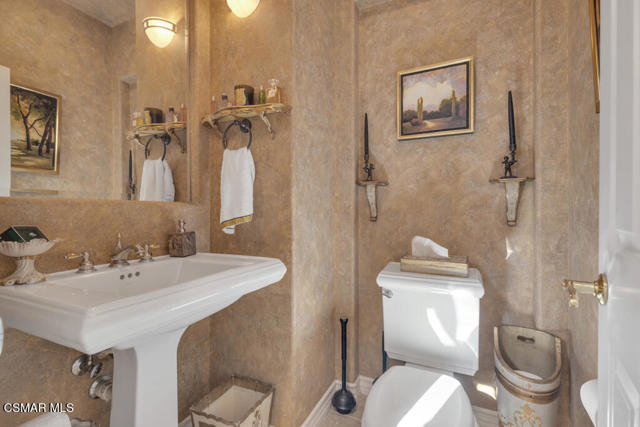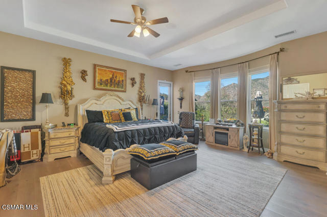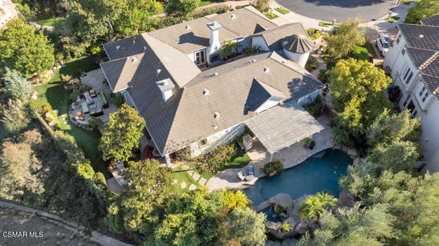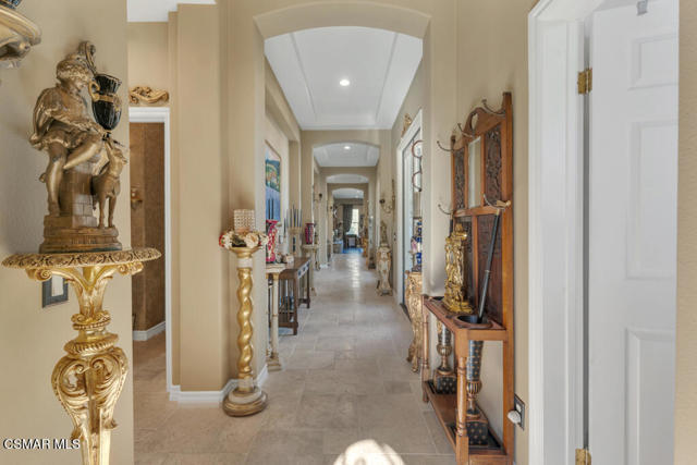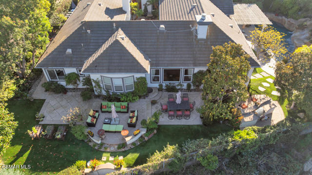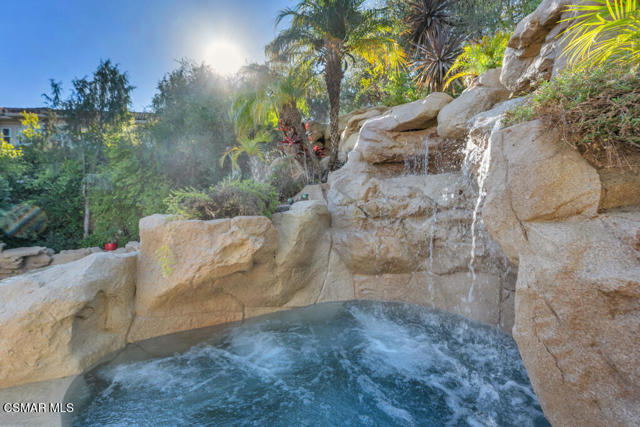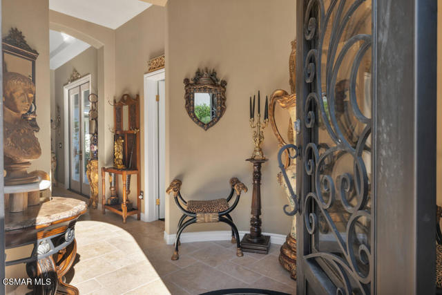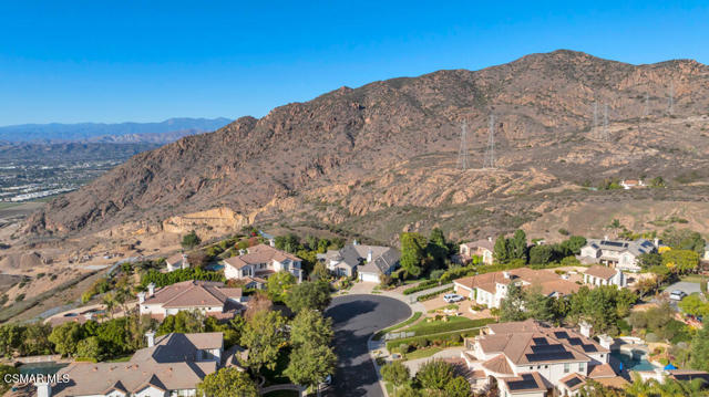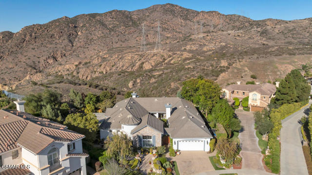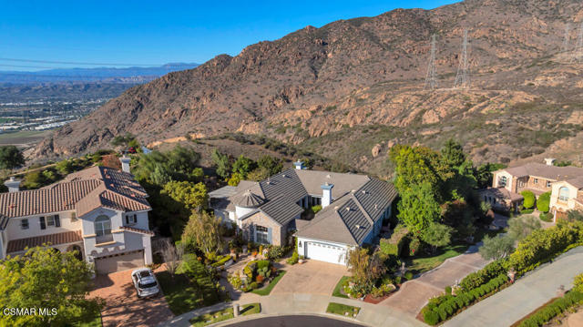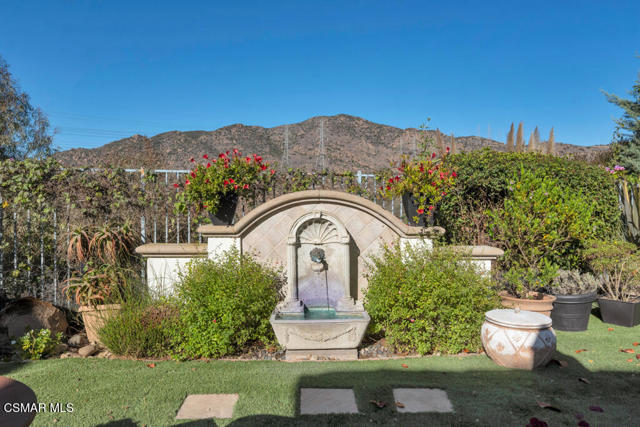 Welcome to 103 Via Sandra, a beautifully upgraded 4-bedroom + Office, 4-bathroom single-story Mediterranean-style home located in a private gated cul-de-sac in the sought-after Dos Vientos community of Newbury Park. This approximately 3,400 sq ft residence showcases stunning mountain views, soaring ceilings, LED lighting throughout, a Sonos sound system, and a flexible open layout designed for modern comfort. The chef's kitchen features top-of-the-line Wolf appliances, granite countertops, a center island, and custom cabinetry. A luxurious primary suite includes enough space for a sitting area, spa-inspired bath, and spacious walk-in closet. Additional highlights include a center courtyard with a fireplace, prestigious home office, a spacious laundry room, 2-car tandem garage, and exterior security camera system. The private backyard is perfect for entertaining with turf landscaping in the front and backyard, a covered patio, built-in BBQ, and stunning pool and spa with newly resurfaced rock waterfall and slide. A whole-home Generac generator adds reliable backup power, while the location offers convenient access to top-rated schools, scenic trails, parks, and amenities.