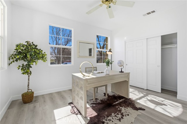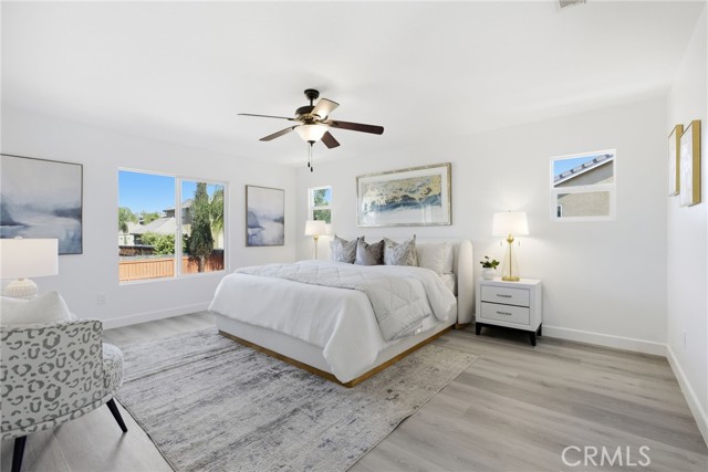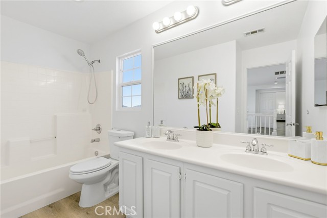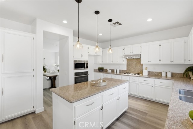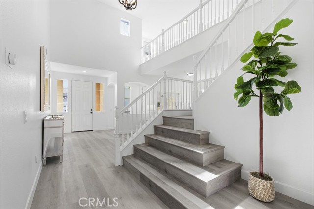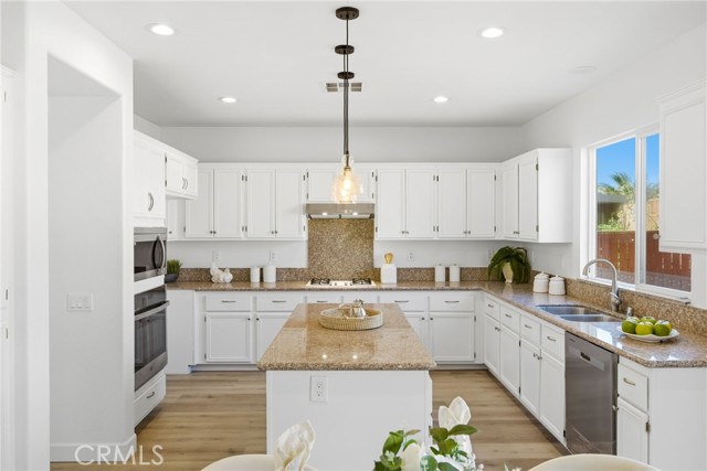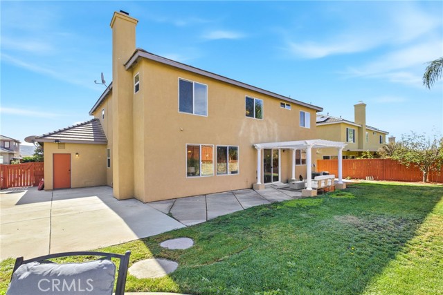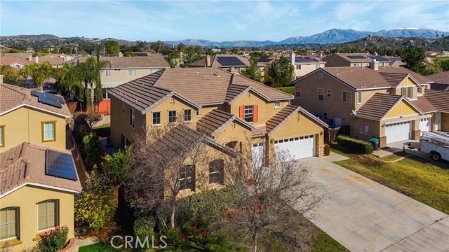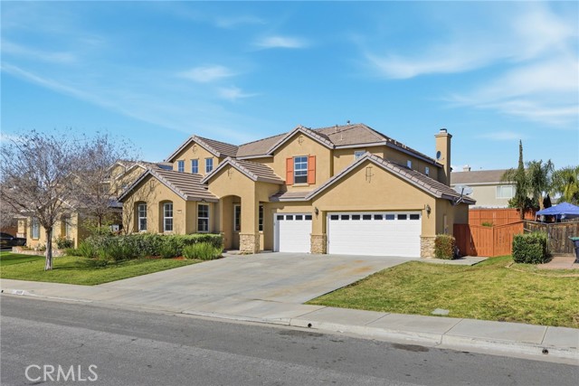 Welcome to 26618 Emerald Ave., located in the desirable East Moreno Valley community. This spacious two-story home offers 5 bedrooms, 4 bathrooms, and 3,283 sq ft of living space on an 8,276 sq ft lot, built in 2005. From the moment you arrive, you’ll appreciate the inviting curb appeal with mature plants and flowers, a three-car garage, and ample driveway parking. Step inside to a formal entry with soaring ceilings and an open, airy floor plan filled with natural light. The formal living room features large windows and flows seamlessly into the adjacent dining area, creating an ideal space for gatherings. The kitchen is located at the rear of the home and offers abundant cabinet and counter space, a large center island, pantry cabinet, granite countertops, pendant and recessed lighting, and views of the backyard. There is room for a family breakfast table, and the kitchen opens directly to the spacious family room, complete with tall ceilings, ceiling fan, large windows, and a decorative tiled fireplace with custom mantle. A cozy media nook provides the perfect spot for a television or entertainment setup. The downstairs level includes a bedroom and full bathroom, ideal for guests or multigenerational living, as well as an interior laundry room with utility sink and cabinet space. Upstairs, you’ll find beautiful flooring throughout and a generously sized primary suite featuring a ceiling fan, walk-in closet, and an oversized en-suite bathroom with dual sinks, walk-in shower, and separate soaking tub. Three additional bedrooms are located upstairs, two of which share a Jack-and-Jill bathroom with double sinks. All bedrooms feature simple, updated light fixtures. An extra-large loft with abundant windows provides flexible space—perfect for a second living area, home office, workout room, or playroom. Additional upgrades include updated light fixtures throughout, newer outlets and switches, updated door hardware, new laminate flooring and fresh interior paint. The backyard is spacious and ready for entertaining, featuring a wood fence, retaining wall, hardscaping, and grass—perfect for hosting family and friends. Conveniently located near shopping, freeway access, and just minutes from elementary, middle, and high schools, as well as Morrison Park and the popular Lighted BMX Park. This home offers incredible space and privacy—ideal for anyone looking for room to grow without feeling crowded.