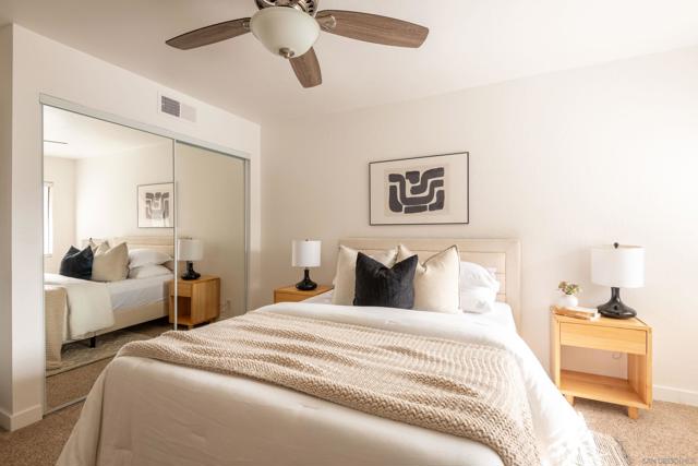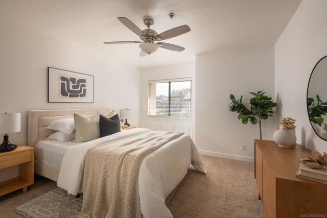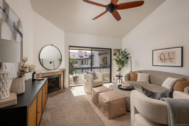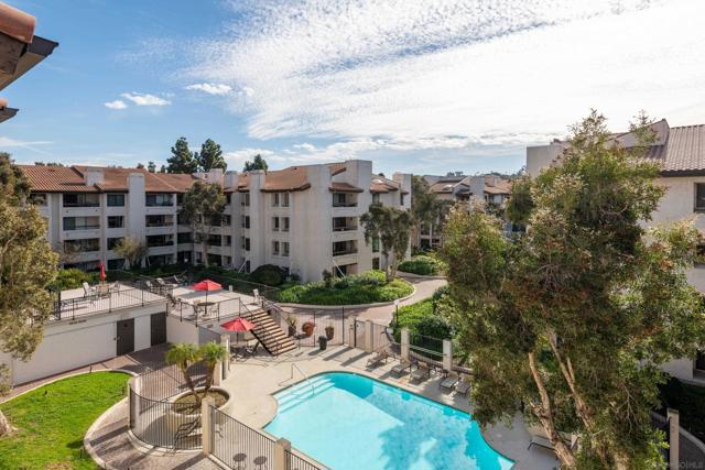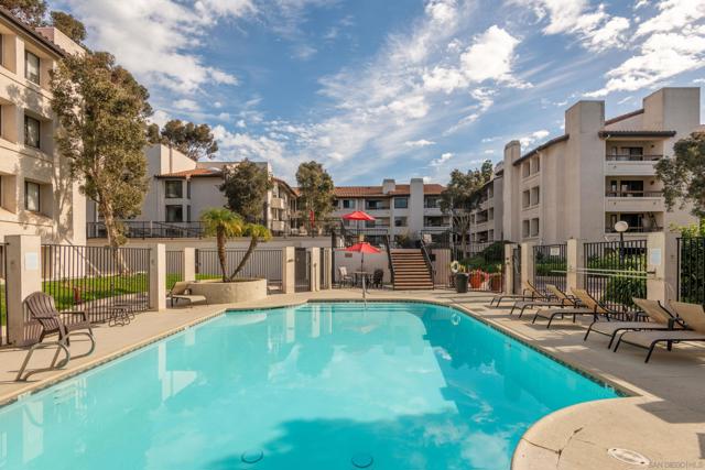Experience resort-style living in the heart of Fashion Valley at Presidio Place. This top-floor condo is filled with natural light and features vaulted ceilings, an open and airy floor plan, and a private balcony overlooking the pool. The spacious living area is ideal for both everyday living and entertaining, while the oversized primary suite offers a peaceful retreat with an ensuite bath and dual sink vanity. Enjoy the convenience of in-unit full-size stacked laundry and thoughtful separation of space throughout the home. Presidio Place is known for its lush, park-like grounds with walking trails, a large lagoon, tennis and pickleball courts, and a pool and spa—creating a true oasis just minutes from shopping, dining, beaches, and freeway access. This is low-maintenance living with a resort feel in one of San Diego’s most central locations.