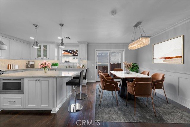 Welcome to your dream coastal retreat at 619 Beryl St. This charming Craftsman-style residence captures the essence of the California lifestyle with timeless charm and modern comfort. Inviting living spaces: dark wood floors, abundant natural light, and graceful crown molding and baseboards greet you in the spacious family room. Thoughtful main level: a convenient full bathroom, a hallway leading to the separate laundry room, and direct access to the garage add everyday ease. Chefs kitchen centerpiece with a generous center island and wine refrigerator is perfect for entertaining. Seamless dining and entertaining: adjacent dining area with elegant wainscoting; a glass door opens to the backyard for seamless indoor-outdoor living. Private, relaxing primary suite: upstairs, the primary suite features a balcony, a large closet, and a private bath with stylish tile accents. Curb appeal and outdoor enjoyment: a white picket fence frames the front yards manicured landscaping, inviting you home. Location highlights: just moments from the Redondo Pier, fine dining, and entertainmentperfect for a vibrant coastal lifestyle. Meticulously maintained details with modern upgrades. Ready for intimate evenings or entertaining friends and family.