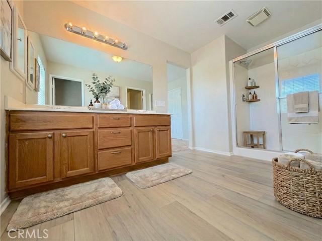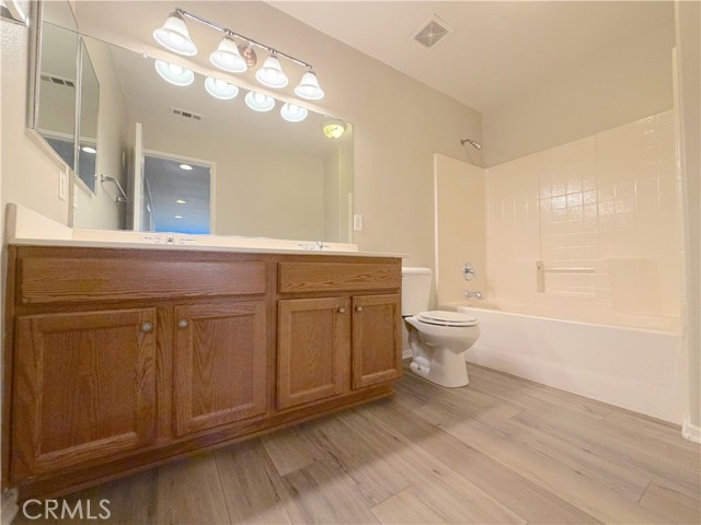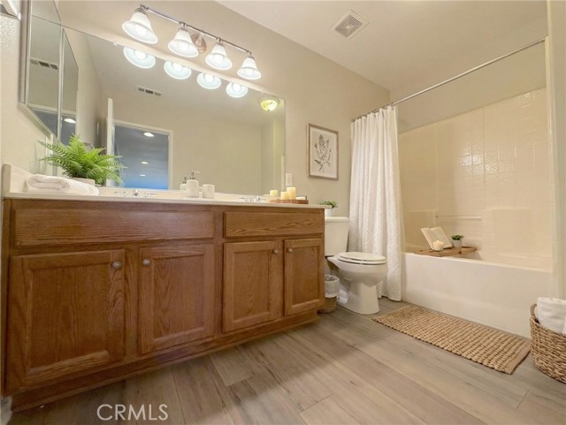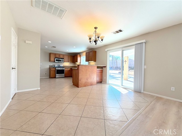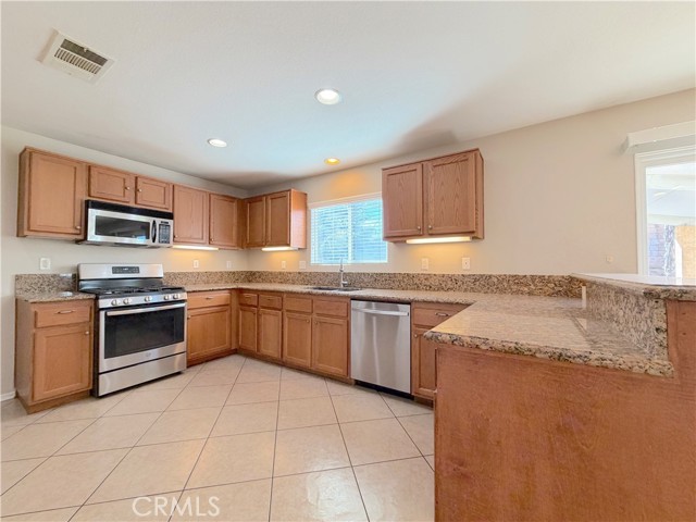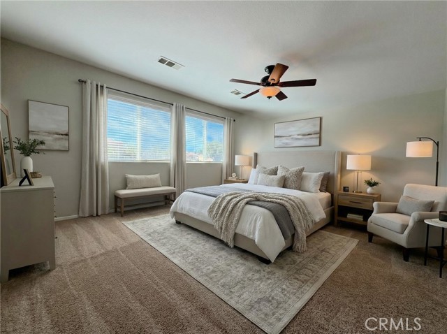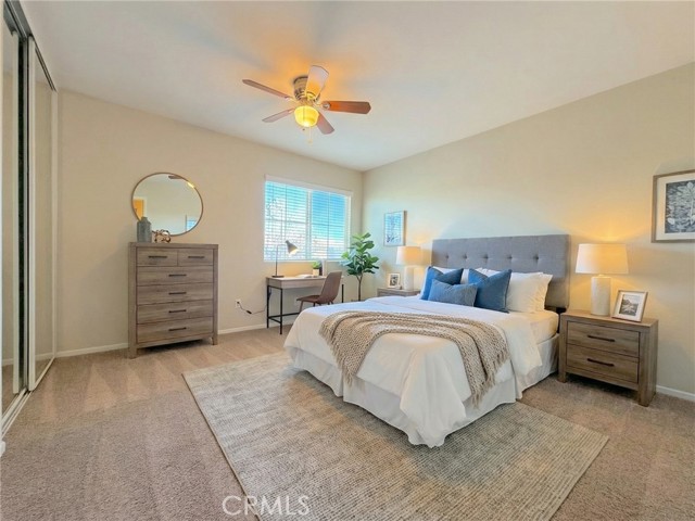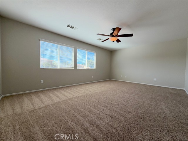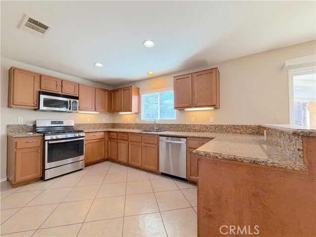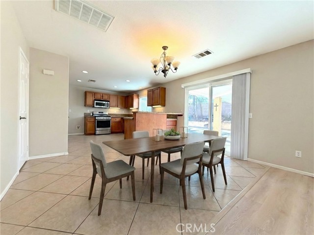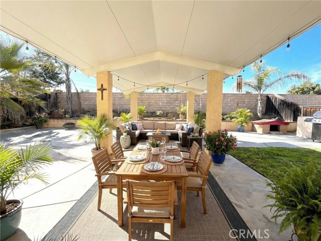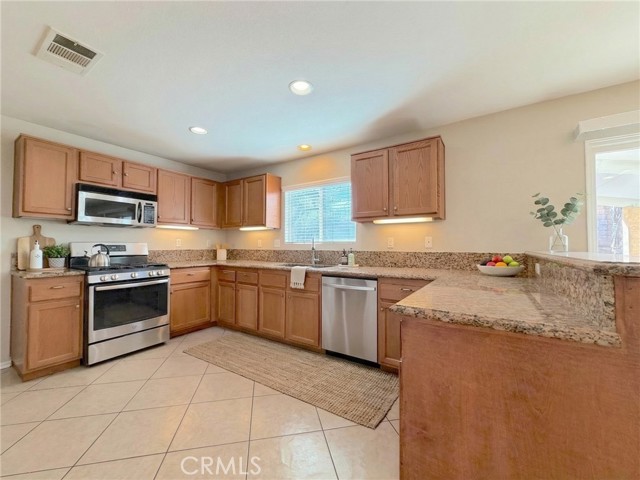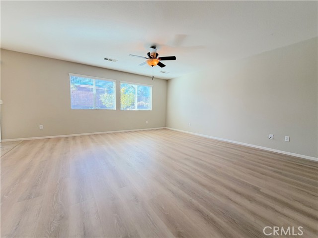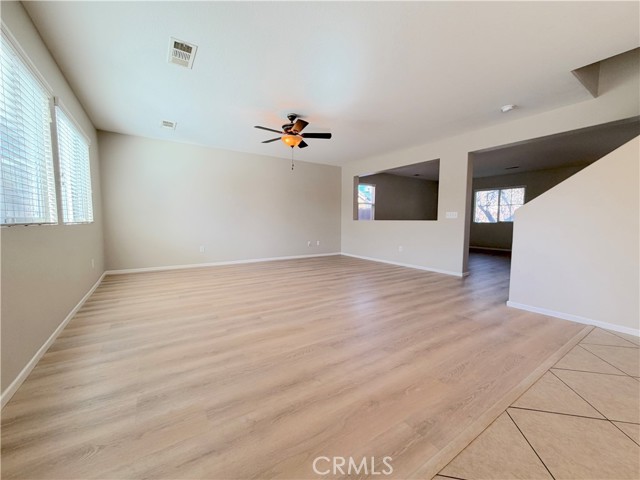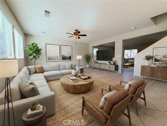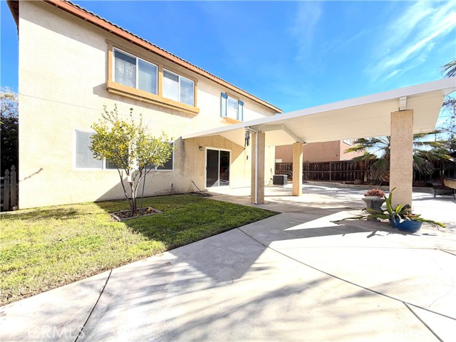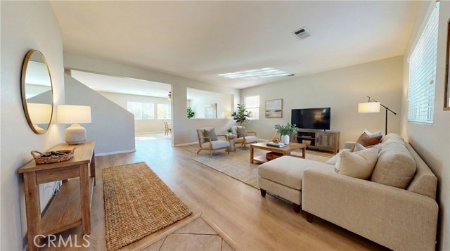 Welcome to this spacious and well-maintained two-story home offering 2,375 square feet of living space on a 6,089 square foot lot, with a bright, open floor plan and comfortable living areas throughout. The main living area features luxury vinyl plank flooring, neutral paint tones, and abundant natural light, creating a warm and inviting atmosphere. The open layout flows seamlessly into the dining area and gorgeous kitchen, making it ideal for both everyday living and entertaining. The kitchen is open to the great room and showcases granite countertops, stainless steel appliances, under-cabinet lighting, ample cabinetry, recessed lighting, and an extended countertop with bar seating. An indoor laundry room with a gas dryer hookup adds everyday convenience. Sliding glass doors lead to the backyard, enhancing indoor-outdoor living. Upstairs, you’ll find brand new carpet throughout, including generously sized bedrooms and a spacious loft, perfect for a second living area, home office, or playroom. The primary suite features plush new carpet, a ceiling fan, dual sinks, a large vanity, and a separate shower. Additional bedrooms are well-proportioned and filled with natural light. The backyard offers a custom Alumawood covered patio and concrete hardscape, creating a great space for outdoor dining, entertaining, or relaxing. Additional highlights include an attached two-car garage, central heating and air, and a functional layout designed for modern living. Conveniently located near schools, shopping, and commuter access, this move-in-ready home combines space, comfort, and value.