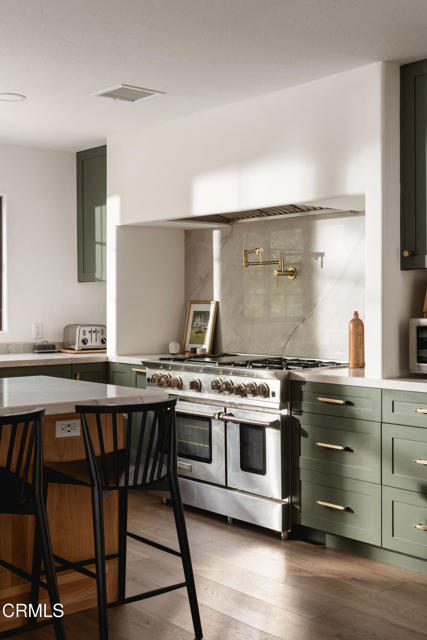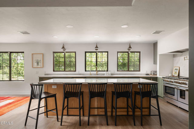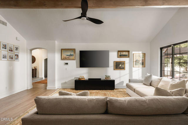 1450 S. La Luna is ideal for someone with a full, active life who wants to come home to a space that feels calm, elegant, and effortless. Newer built by Ojai standards, this single level Spanish influenced home was designed for low maintenance living while still offering architectural character and warmth. Located on a small cul de sac, the property offers a sense of privacy and protection while benefiting from convenient access to Highway 150 and 33, making it well suited for buyers who value ease of movement and connection. The home offers over 2,500 square feet and has been completely renovated with attention to detail, featuring arched walkways and doorways, tall ceilings, abundant windows, and generously sized rooms filled with natural light. The heart of the home is the open kitchen and family room, a welcoming and social space designed for cooking, gathering, and entertaining. Bedrooms are located on one wing of the home, providing separation from the main living areas. The primary suite feels spa like and romantic with a wet room style bath and a sense of retreat. A detached casita with kitchenette and private bathroom offers flexibility for guests, work, or creative use. Outdoor spaces are intentional, manageable, and easy to enjoy with a fenced entry courtyard, raised garden beds, fruit trees, and a detached three car garage. This home is well suited for someone who values design, simplicity, and convenience and wants a beautiful low maintenance place to land while staying connected to the Ojai Valley.Property Highlights: This single level home offers four bedrooms and expansive living spaces designed for everyday comfort and entertaining. The open kitchen, family, and dining area features high ceilings, abundant light, and French doors connecting indoors and out. The chefs kitchen was completed approximately two years ago and includes a commercial grade range and oven with pot filler, a large quartz island, extensive custom cabinetry with pull out organizers, dedicated pantry storage, and a built in refrigerator and freezer. Beverage and wine refrigeration are included. The family room offers high ceilings, large windows, and generous wall space for art. Two bedrooms share a Jack and Jill bathroom and feature high ceilings, ceiling fans, and courtyard views. The fourth bedroom can function as an office or den. Additional features include a well equipped laundry room, side storage for recreational gear, and a detached three car garage.