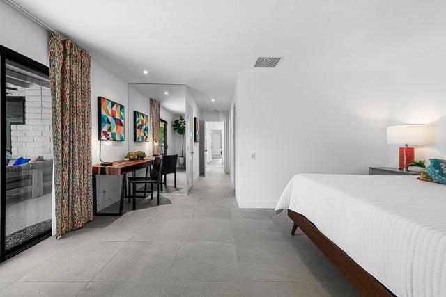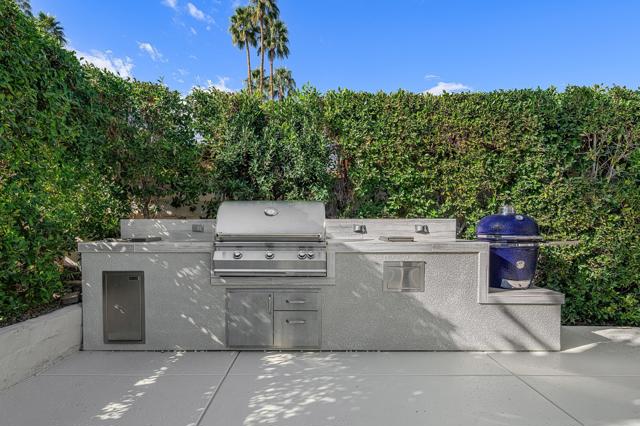 Welcome to your ultimate Palm Springs escape. This stylish 3-bedroom, 3-bath home sits on a spacious corner lot with sweeping mountain views and a light-filled, airy living room that instantly sets the mood. Striking entry doors create a memorable first impression, while seamless indoor-outdoor living invites you to relax, entertain, and enjoy the desert lifestyle to the fullest.Step into the backyard and discover your own private oasis--complete with a sparkling pool and spa, covered patio, and a fabulous outdoor kitchen designed for hosting. Fire up the grill or the iconic blue Big Green Egg and savor unforgettable evenings under the stars. Inside, thoughtful upgrades include a whole-house water filtration system, laundry in the garage with direct access to the home, and a 220-volt outlet ready for EV charging. A 24-panel owned solar system powers the home efficiently, offering both sustainability and significant energy savings.Residents enjoy a private neighborhood park with tennis and pickleball courts, all just minutes from the dining, shopping, and vibrant energy of the Village of Palm Springs. Sophisticated and fun, this home is the perfect desert retreat.
