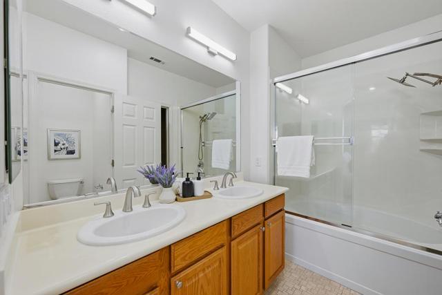 Welcome to this Northeast-facing, beautifully updated home in the highly desirable gated Terra Serena community in the heart of Milpitasknown for its impressive amenities and convenient Silicon Valley location. Step inside to an inviting open-concept layout featuring an expansive living room, high-quality custom plantation shutters, recessed lighting throughout, and large windows that fill the home with natural light. The modern kitchen shines with new quartz countertops and a full-height backsplash, plus a new kitchen faucet and garbage disposalperfect for everyday living and entertaining. Enjoy 3 generously sized bedrooms PLUS a bonus room ideal for a home office or study, along with a spacious front courtyard for relaxing outdoors. The primary suite offers a walk-in closet and a soaking tub for unwinding at the end of the day. Terra Serena residents enjoy two gated entrances, a pool, heated pool/spa, and clubhouse, plus plenty of guest parking within the community. Even better, the neighborhood offers parks just steps from both gates with playgrounds and tennis/basketball courts. Located just across the way from Stratford School, and close to shopping, dining, BART, light rail, major freeways, and leading tech campusesthis is Milpitas living at its best.