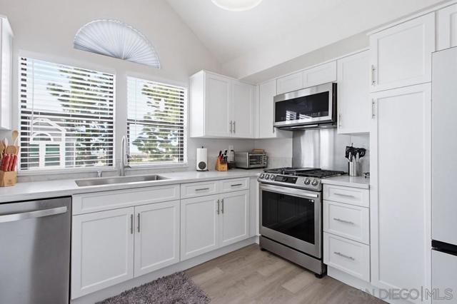 This stylish 2-bedroom, 2-bath townhome is located in the highly desirable Nob Hill community of Scripps Ranch. The home features a recently remodeled kitchen with slab countertops and stainless-steel appliances, beautiful wood flooring, and spacious, updated bathrooms. Soaring ceilings, designer window treatments, a cozy fireplace, and abundant natural light create a bright, welcoming atmosphere. A versatile loft provides the perfect space for a home office. Additional highlights include a newer heating and air conditioning system and ample storage throughout. Enjoy stunning west-facing views stretching to the coast from both the home and private patio, along with the convenience of an oversized two-car garage. This gated community offers exceptional amenities, including two pools, spas, and direct access to Lake Miramar. Ideally situated near top-rated schools, shopping, dining, parks, and entertainment, with easy access to all that San Diego has to offer. This is a home you won’t want to miss.