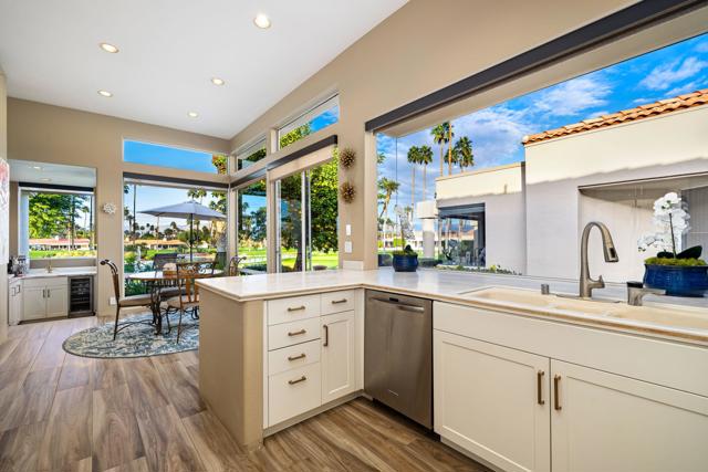 Spectacular Lakefront setting with some of the finest views in Desert Horizons Country Club. This lovely furnished 3-bedroom, 3-bath St. Andrews floor plan showcases sweeping Mountain, Lake, and Double fairway views overlooking 6th and 7th Fairways. A private courtyard entry welcomes you into a tastefully appointed home where the Great Room features pristine tile flooring, a fireplace, walls of windows, and a dining area with wet bar--ideal for entertaining. The Chef's Kitchen has been updated with new appliances and cabinetry, while recent improvements include a newer water heater, new HVAC system, and updated tile flooring. The Primary Suite offers a spa-like retreat with a large walk-in shower, soaking tub, and walk-in closet. A Guest Suite includes an en-suite bath, and a versatile 3rd bedroom may also serve as a Den or Office with an additional bathroom just a few steps away. Step outside to the rear patio to enjoy breathtaking sunset views creating a serene setting for outdoor living and entertaining. Community Pool and Spa just steps away. A 2-car garage plus golf cart garage completes this picture-perfect lifestyle in a premier Indian Wells location. Newly Updated Desert Horizons Country Club--home to world-class amenities; Dining, new Courts Pavilion with 11 Pickleball Courts, 2 Tennis Courts, State-of-the-Art Fitness & Wellness Center, private 18-Hole Golf Course, and an exciting calendar of social events.
