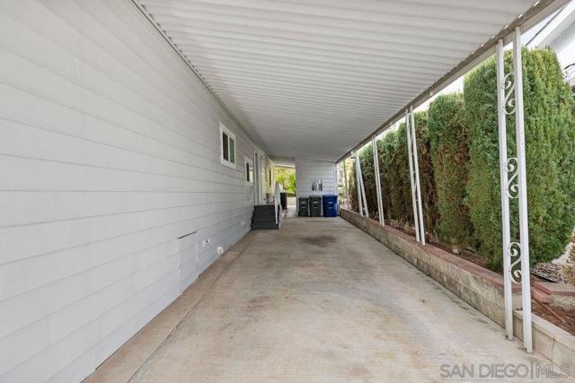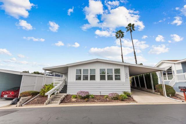Stunning updated home with vaulted ceilings and easterly mountain views! Beautifully remodeled kitchen features a large quartz island w/ storage and stainless steel appliances. The open floorplan of the kitchen, living and dining areas allow plenty of space to entertain. Primary suite has dual sinks, soaking tub, step in shower, large linen closet, walk in closet & access into California room. Extra large utility room w/ oversized broom closet. Carport fits up to 2 vehicles and has a large secured storage. This unit is also located near guest parking spaces. Palomar West is a 5-star park with resort-style living with rent control & no property taxes on this home! This is a non-profit, 55+ park with a very active & social atmosphere - heated pool, spa, clubhouse, gym, tennis courts, pickleball and putting green.