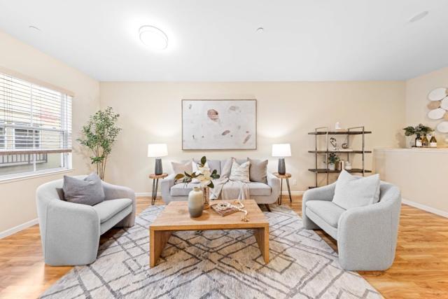 Stunning 3-bedroom, 2.5-bathroom townhome in the prestigious Parkside Villas at Tasman Crossing. A private patio provides a functional outdoor space at the entry. The split-level layout is perfect for entertaining & everyday living. On main level, bright living area features high ceilings, expansive windows & a fireplace, creating an open & inviting atmosphere. Half a flight up, dining room with a wet bar & family room adjacent to the kitchen offer a seamless flow. Gourmet kitchen boasts granite countertops, ample cabinetry, stainless steel appliances & a center island with bar seating. Powder room completes this level. Upstairs, primary suite offers a walk-in closet & an ensuite with a double vanity, jacuzzi tub & separate shower. Two additional bedrooms share a bathroom with a shower-over-tub, alongside a dedicated laundry area. The main level includes a spacious 2-car garage & an additional 304 SF space, ideal for an office or gym. Prime location, just seconds from Seven Seas Park with basketball & tennis courts, a dog park, sports fields, playground, water play area & picnic spots. A short drive to new Downtown Sunnyvale for dining & shopping. Conveniently close to Google, Apple, Nvidia, and Meta, with easy access to Highways 101 and 237.