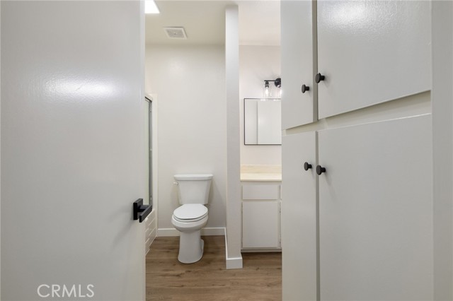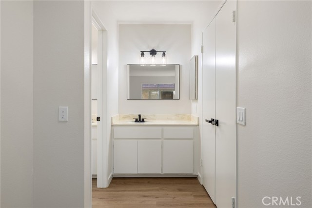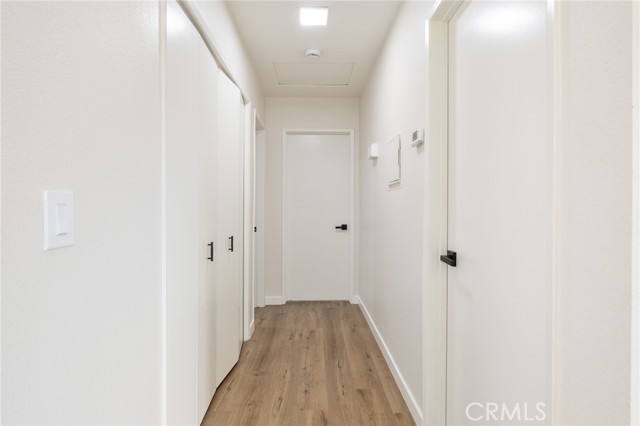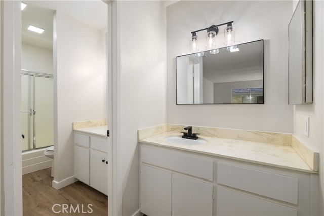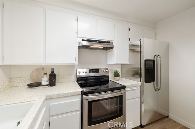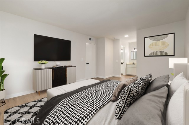 Tastefully updated upper-level, single-story condo ideally located within the community. This light and bright home features brand-new luxury vinyl plank flooring, fresh interior paint, and new baseboards throughout. A spacious covered patio welcomes you to the front entry, opening into an inviting family room with dual windows and an open connection to the kitchen. The kitchen offers bright white cabinetry, tiled countertops, stainless steel appliances, updated lighting, and convenient countertop seating. Additional cabinetry was added where the dishwasher was previously located and can easily be converted back if desired. Down the hall, the generously sized primary bedroom features double-door entry, a walk-in closet, and a private vanity. A separate shower area creates a Jack-and-Jill style bathroom with hallway access. The secondary bedroom is located just steps away, along with the full bathroom featuring dual sinks, new fixtures, framed mirrors, and updated lighting. A hallway laundry closet with bi-fold doors adds everyday convenience. The unit includes shared use of a two-car garage located just steps from the condo. Community grounds are beautifully maintained with mature trees and winding walking paths throughout. Ideally situated within the highly regarded Temple City School District.