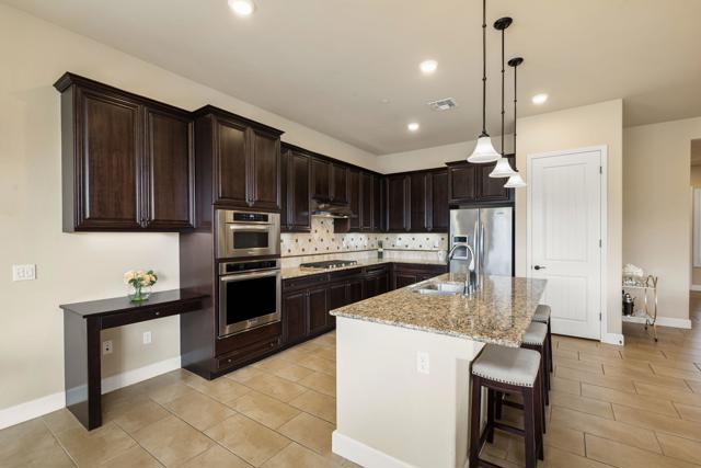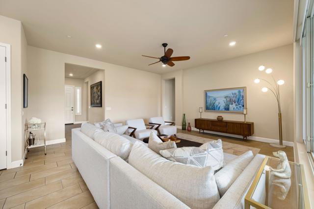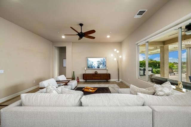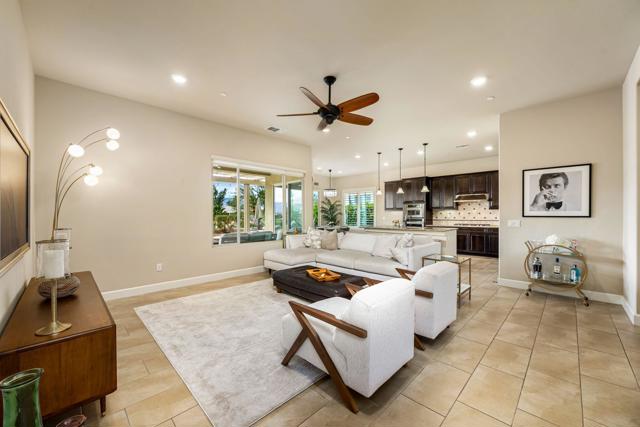 Indulge in the pinnacle of desert luxury with this stunning residence set against two pristine fairways and sweeping 180-degree southwest mountain vistas that steal the show. Designed for effortless entertaining, the resort-style backyard boasts a built-in BBQ and outdoor kitchen framed by elegant pavers and an expansive wrap-around Alumawood patio, while a sparkling Pebble Tec saltwater pool and cascading spa invite endless relaxation and unforgettable gatherings. Inside, the Chef's kitchen shines with a generous prep island accented by pendant lighting, bullnose slab countertops, espresso-toned cabinetry, a gas cooktop with hood, and built-in ovens. The updated primary retreat features French doors that open to those jaw-dropping views, and the desirable hospitality floor plan is enhanced by bay windows, modern fans, a sleek Blanco faucet, and thoughtful upgrades throughout. Completing the package is a garage with an oversized mini-split and abundant room for vehicles and storage--an exceptional home that perfectly captures the seamless indoor-outdoor lifestyle the desert is famous for.