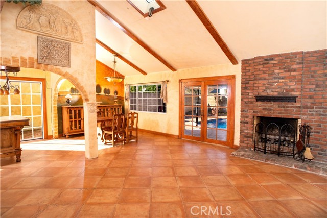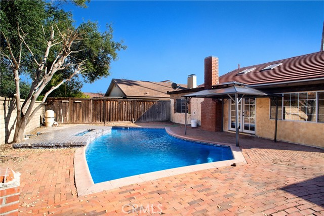 Located in the desirable Old Orchard neighborhood in the heart of Valencia, this single-story 2 bedrooms, 2 baths home is tucked away on a quiet cul-de-sac and offers an excellent opportunity to reimagine and customize a classic floor plan. The home features a double-door entry leading to a formal foyer and opens to high vaulted beamed ceilings with skylights, a brick fireplace, and an open living area with French doors overlooking the pool. The kitchen includes a sliding door with access to the expansive side yard, offering great indoor-outdoor potential. The spacious primary bedroom features a wall-to-wall closet and a private bathroom. Additional highlights include direct access to a two-car garage with laundry hookups. The private wraparound yard with a sparkling pool ideal to gatherings. This property presents a wonderful value-add opportunity for buyers seeking to update and personalize a home in a well-established community. No Mello-Roos and low HOA. Community amenities include a pool, playground, and sports courts.