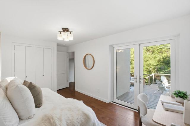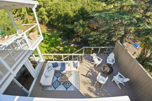 Tucked among mature trees with scenic Bay views, this beautifully designed 4-bedroom, 3-bath home offers a flexible multi-level floor plan, abundant natural light & exceptional indoor-outdoor living. The main level features an inviting living room with a charming wood-burning fireplace & cozy dining area. The kitchen opens to a spacious family room with multiple access doors leading to a generous outdoor deck perfect for entertaining and enjoying the tranquil views. Just a few steps up, the private bedroom wing includes a serene primary suite with ensuite bath & direct access to an outdoor deck, along with two additional bedrooms & a full bath. The lower level offers exceptional versatility with a private 4th bedroom and full bath, ideal for guests, multigenerational living or a home office. A few steps down, a large bonus room with fireplace provides the perfect space for a second family room, media room or home gym. This level opens to an expansive deck and a large, flat grassy backyard, surrounded by mature trees that create a peaceful, park-like setting. Oversized two-car garage with extra storage. Ideally located close to vibrant downtown San Carlos, parks, and top-rated schools, this home offers a rare combination of privacy, views, and flexible living. Welcome home!
