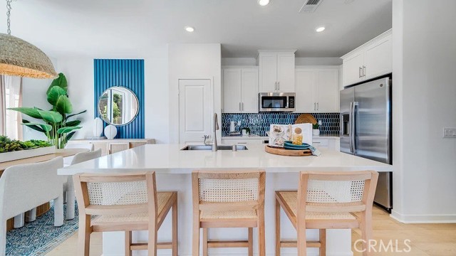 NEW CONSTRUCTION! Includes Upgraded Flooring! This new two-story home is host to a spacious and flexible open-concept floorplan on the first level, blending the kitchen, living and dining areas for seamless everyday transitions and multitasking. All three bedrooms are located on the second floor for optimal privacy, including the luxurious owner’s suite with a full bathroom and walk-in closet. Green Leaf is a new series of condos for sale, now selling in the gated Sycamore Heights masterplan in Rancho Cucamonga, CA. Homeowners will enjoy access to all planned onsite amenities within the masterplan, including a rec center, dog park and tot lot. Victoria Gardens and Haven City Market are just five miles away, offering an array of shopping, dining and entertainment options. Effortlessly plan trips and vacations with convenient proximity to the Ontario Airport, and enjoy simple access to nearby entertainment destinations like Top Golf, just five minutes away.