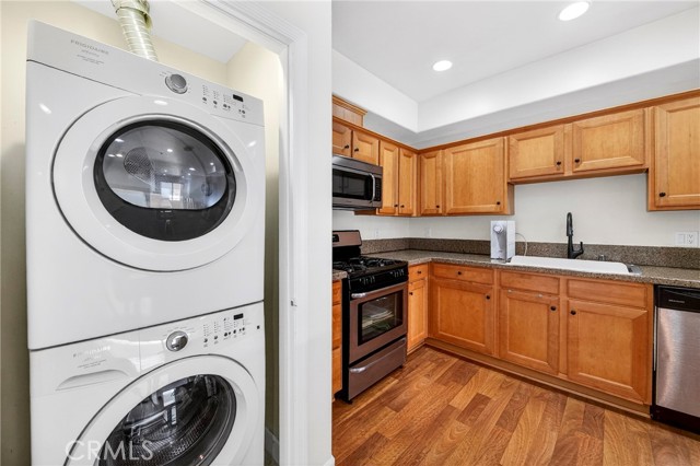 Well Maintained Condo For Sale! Grand Park Condominium 2Bed/1Bath On The Top Floor With Only 1 Common Wall Below. Spacious Rooms With Carpet Floor. Primary Bedroom Has Its Own Closet. Second Room Can Be Bedroom, Office or Hobby Room Without Closet. Spacious Living Area With Sliding Door. Granite Counter Tops In Kitchen With Island. Stackable Washer & Dryer Room At The Kitchen Area. 2 Car Assigned Tandem Parking Spaces(P9 & P10). Community EV Charging Stations Available. HOA $441.15/Month Included Water & Trash. Conveniently Location Between Korea Town & Down Town. Easy to Access Freeways. *On Property Profile : 1bed/1bath/760sf – Buyer & Buyer’s Agent Verify & Satisfy