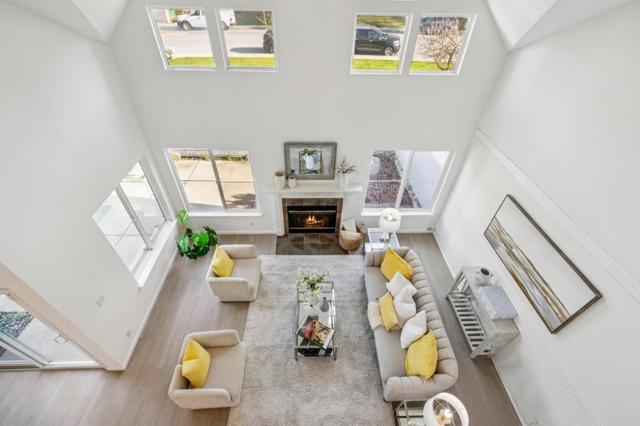 Stunning end unit modern townhome nestled in scenic park-like setting in desirable Nantucket Cove. High ceilings & various windows provide amazing natural light and open view. Large living size of 1730SF with potential of 3rd bedroom/office & full bathroom downstairs. Beautifully remodeled with new quartz kitchen countertops, ample white cabinetry, stainless steel appliances including gas range, fridge, dishwasher. New elegant laminate floor throughout. Two remodeled fireplaces. Loft-style staircase & landing leads to two primary suites. Main suite features cozy wood-burning fireplace, dressing area, walk-in closet & separate stall shower & tub. In unit laundry & attached side by side 2 car garage. Sliding door opens to large wrap around rear patio next to greenbelt. This home also has a front courtyard perfect for outdoor entertainment. Port Royal amenities include clubhouse, pool, hot tub, tennis courts, gym, playground. Near Bayside walking trail & parks, award winning FC Elementary, Edgewater Shopping & Dining. Easy access to HWYs 101 & 92.