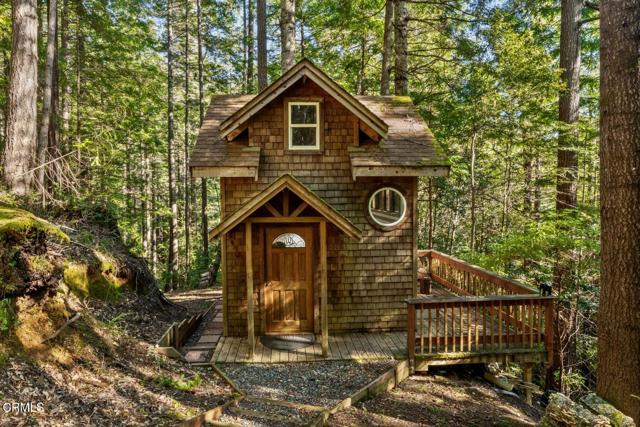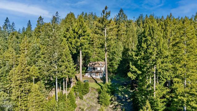 Perched above a sweeping canopy of trees, 'Chateau La Rose' offers the rare feeling of complete seclusion--where sky, forest, and horizon stretch endlessly in every direction. Escape to this serene retreat with a private tree-top panorama where you can imagine being the only person on the planet. Mornings arrive with glowing sky and birdsong and evenings end in a bubbling hot tub beneath vivid sunsets or around a bonfire under a galaxy of stars. The reimagined first level garage conversion is now a spacious bedroom with double French doors and deck access. Nearby, is a convenient bathroom with tiled shower, laundry and quartz-topped sink vanity. Just upstairs, the main living level unfolds into a bright, open floor plan with an efficient kitchen, two additional bedrooms, and a full bath. Roomy and light filled with floor-to-ceiling windows, the open floor plan of the 2nd floor is a wonderful spot for entertaining and relaxing. Natural light floods every corner creating an appealing indoor/outdoor aesthetic. The upper balcony is telescope-worthy with ample space for lounging and enjoying outdoor dining while experiencing the ever changing sky. Explore the property's winding network of former logging trails to discover a storybook artist's studio complete with an outdoor shower and loft resting nook. Tucked deeper into a mysterious corner of the woods, a hidden yurt awaits the adventurous of spirit. With 10 private acres to explore, this land invites hiking, reflection, and connection with nature at every turn. Pilots will appreciate the property's proximity to Little River Airport just 2.5 miles away, while the ocean, Little River Store, and fine dining are only five miles from the home with Historic Mendocino Village just minutes beyond. Chateau La Rose is a property that offers both true solitude and easy access to everything that makes the Mendocino Coast special. It is home for those who value space, views, and a sense of being wonderfully removed from it all.