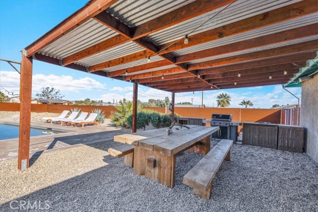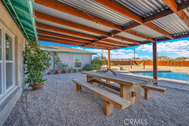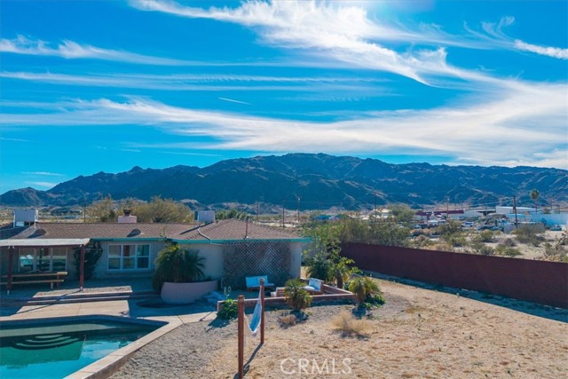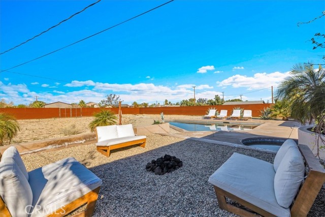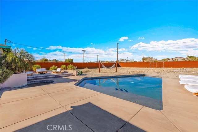 Welcome to this inviting 3-bedroom, 2-bathroom home offering 1,664 sq ft of comfortable living space, perfectly set on a spacious 20,000 sq ft lot designed for relaxation and entertaining. A newly installed in-ground pool and hot tub allows you to create your own private desert oasis, ideal for soaking up the sun or enjoying evenings under the stars. The thoughtfully designed outdoor seating and entertainment areas make hosting family and friends effortless, while the generous lot provides room to garden, play, or expand. Located just minutes from Joshua Tree National Park, this home offers easy access to hiking, sightseeing, and endless outdoor adventure. You’ll also love being close to Downtown 29 Palms’ Freedom Plaza, where you can enjoy community events, a growing farmers market, local restaurants, and popular bars—bringing the best of small-town charm and vibrant city life together. Whether you’re looking for a full-time residence, vacation getaway, or investment opportunity, this desert gem offers the space, lifestyle, and location you’ve been searching for.