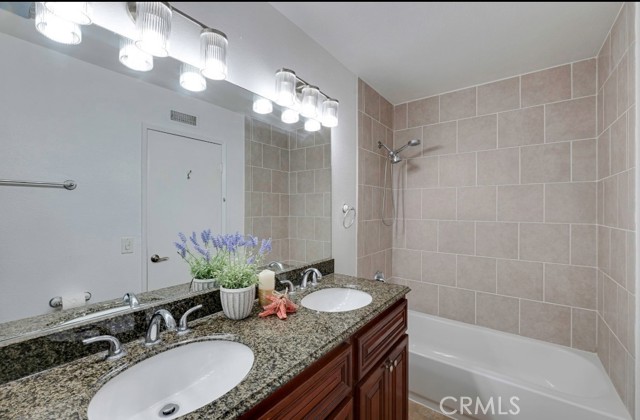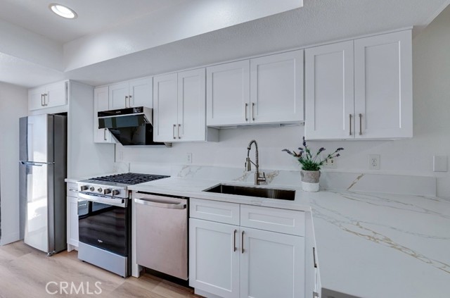 Turnkey unit located in the Bellflower Manor community. This is one of the best-maintained units in the complex, reflecting true pride of ownership and featuring a complete, high-quality remodel throughout. The home offers a great open floor plan with a combination of ceramic tile and laminate flooring. The spacious living room. The magnificent gourmet kitchen is equipped with quartz counters, custom cabinetry, breakfast counter, and an adjacent dining area. The incredible master suite features a completely remodeled full bath. All bedrooms are spacious and offer excellent closet space. The private backyard is nicely decorated. The unit also boasts an oversized two-car garage with extra storage space and inside laundry facilities. The community amenities include a pool, spa, clubhouse, lush greenbelt areas, and ample guest parking.